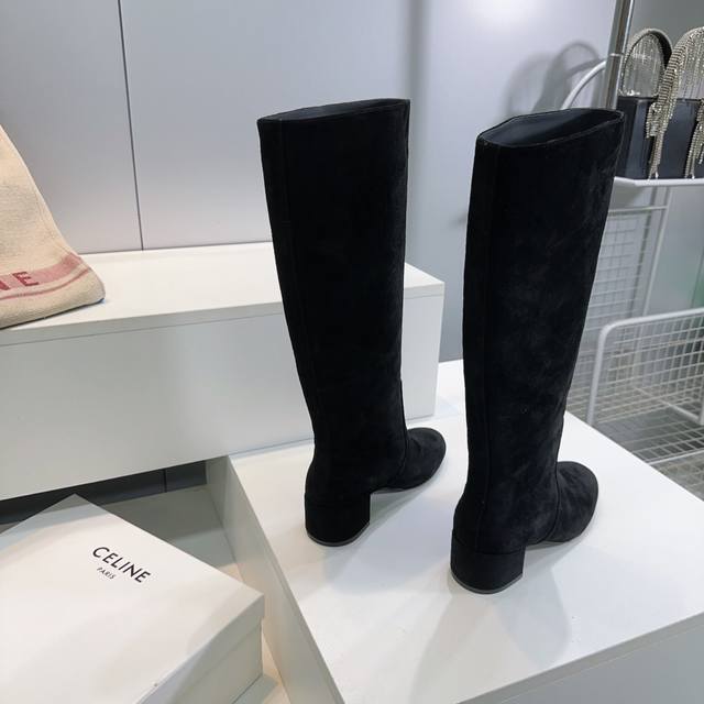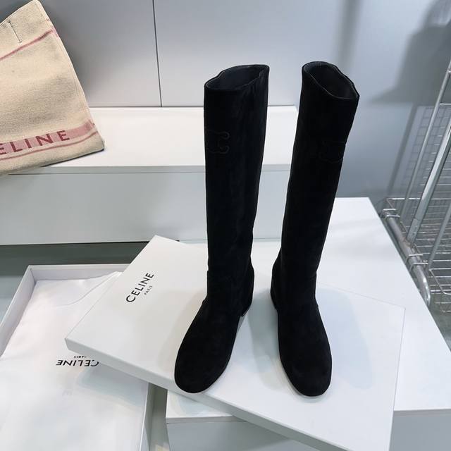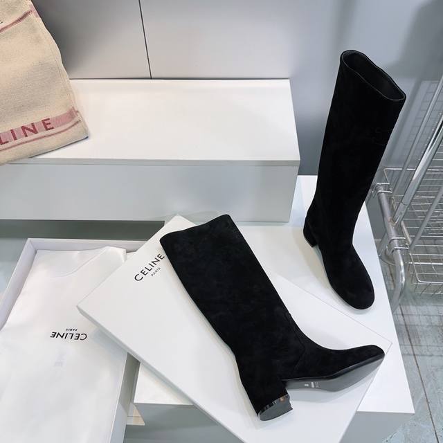 High-quality factory-made long boots! Top quality Celine 25Ss Fall/Winter new arrival Arc de Triomphe retro simple patent leather chunky heel short boots, long boots, straight-leg riding boots! This season has so many great styles, like these military boots with a biker vibe. The simple slip-on design is flattering for all leg shapes, instantly making your legs look longer, super slimming and versatile! Absolutely stunning! The Arc de Triomphe logo is classy and sophisticated! The upper is made of imported cow suede, the lining is imported sheepskin, the heel height is approximately 5.5cm, and the outsole is made of imported Italian genuine leather. Sizes: 35-40. Sizes 40 and above are non-refundable. Comes with original packaging.