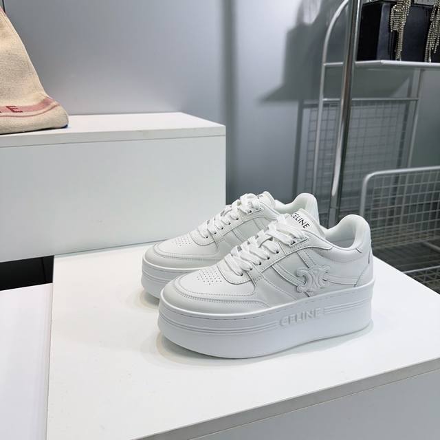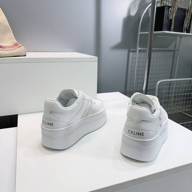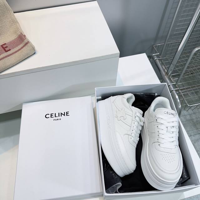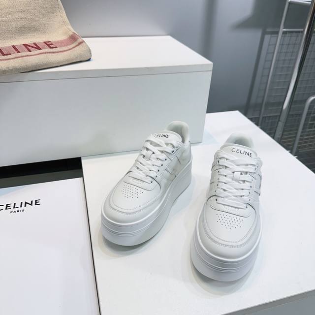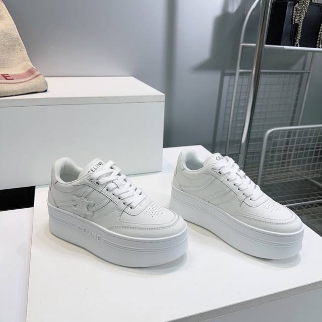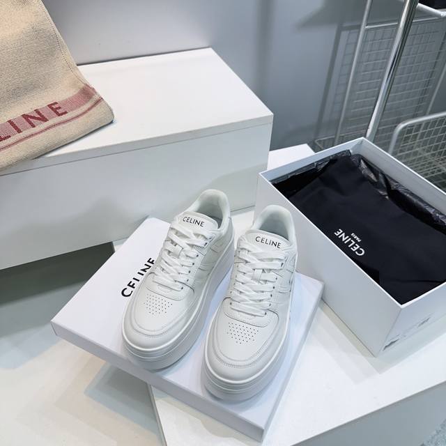 High-quality factory-made thick sole! Top-quality upgraded version! Celine Fall/Winter 2025 new casual white sneakers! One of the hottest casual shoe items! Liu Wen, Yang Mi, and Lisa all wear this style. Luxurious yet practical, its inherent quality perfectly embodies the seemingly contradictory style of casual luxury. Its leather goods and accessories, from bags and shoes to ties and scarves, emphasize practicality while maintaining a luxurious feel. These casual sneakers are full of street style. Every shoe closet needs a pair of white sneakers, and this year's selection is perfect. Unlike the ubiquitous Air Jordans, Celine white sneakers have their own unique design. The leather upper is very easy to care for, ingenious and distinctive. The logos on the side and heel give it a simple yet stylish look. A perfect pair of white sneakers! The upper is made of original cowhide, with a cotton fleece lining for comfort and breathability! Original molded 1:1 rubber outsole! Lightweight and durable!