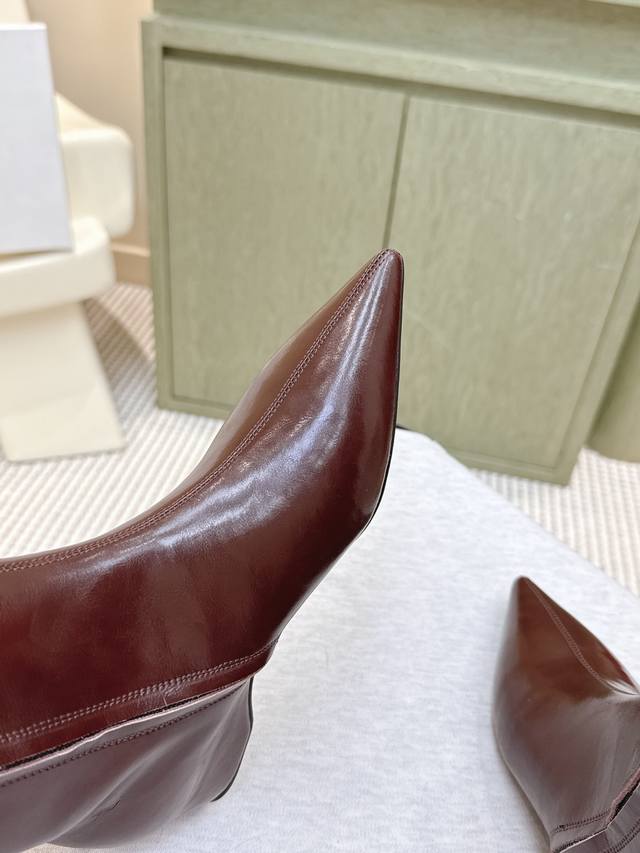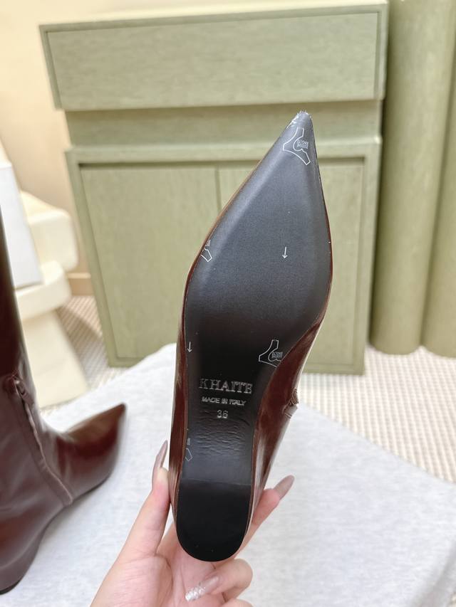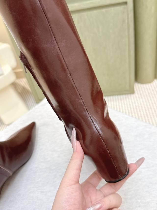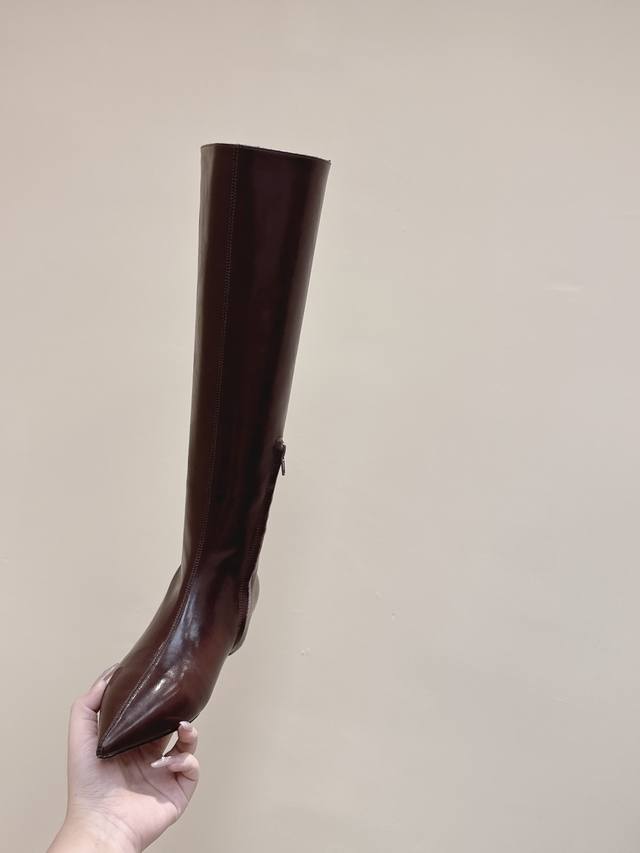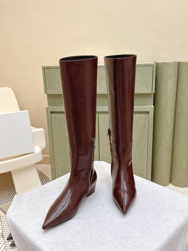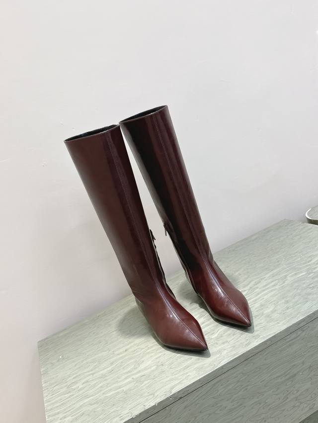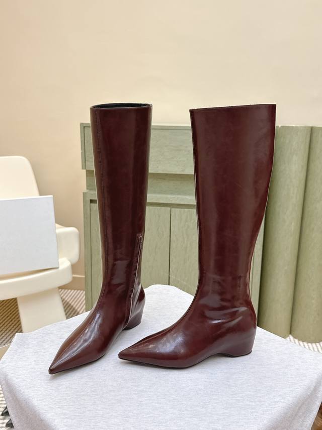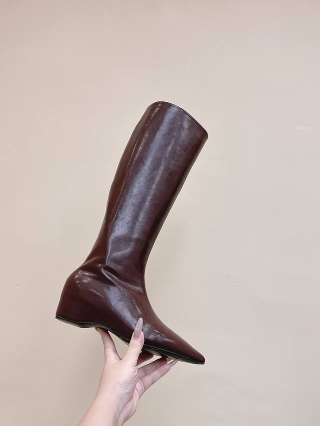 High-quality import | D0083 Khaite 25 Early Autumn New Retro Wedge Heel Long Boots Pointed Toe Hidden Wedge Elastic Long Boots