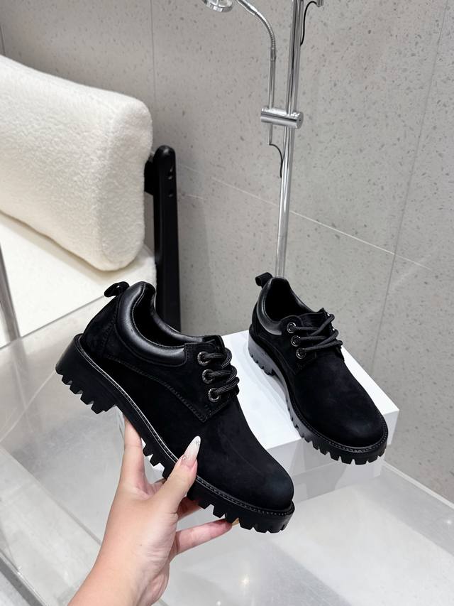 25Ss New autumn and winter top quality Celine Celine couple's Martin yellow boots series classic thick-soled lace-up loafers
