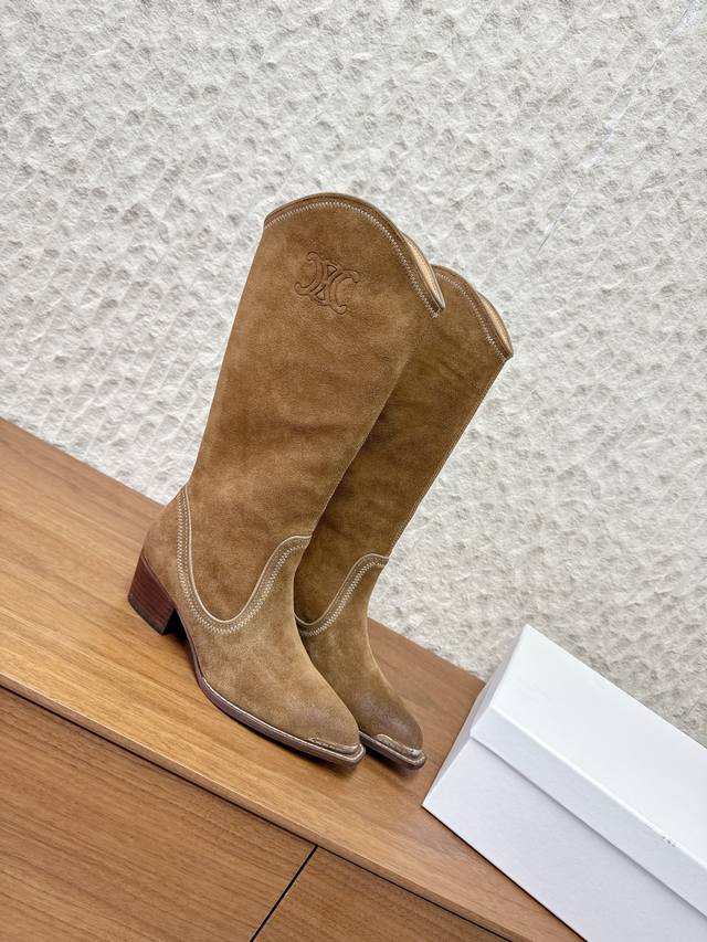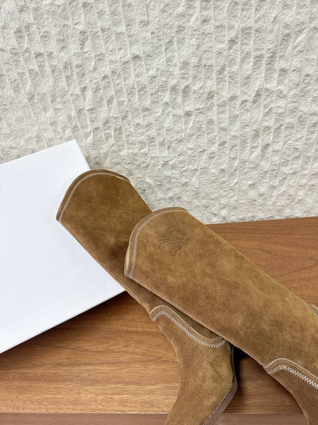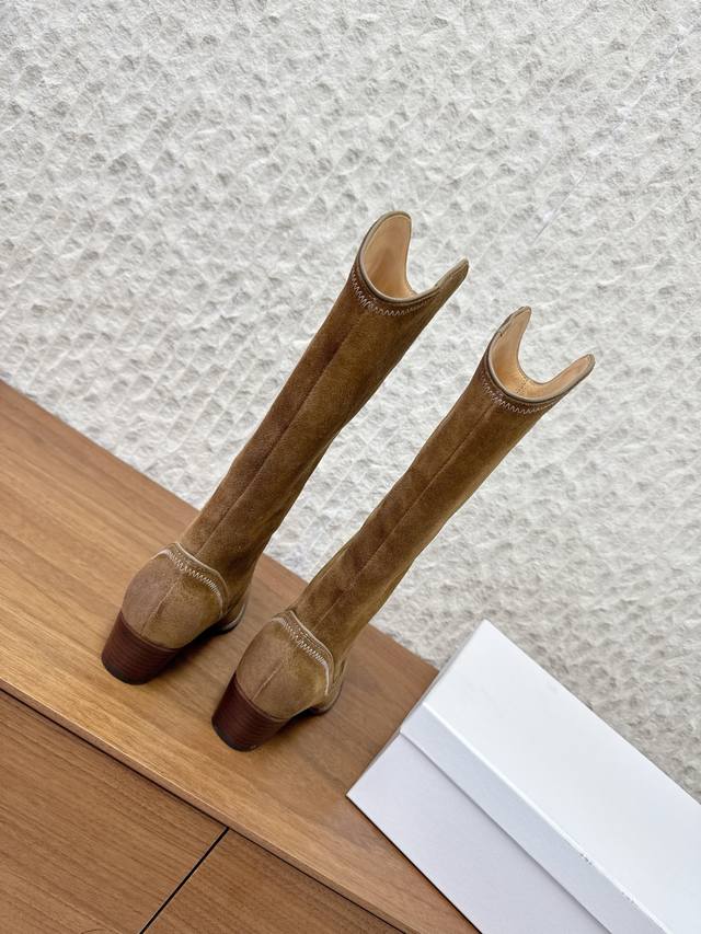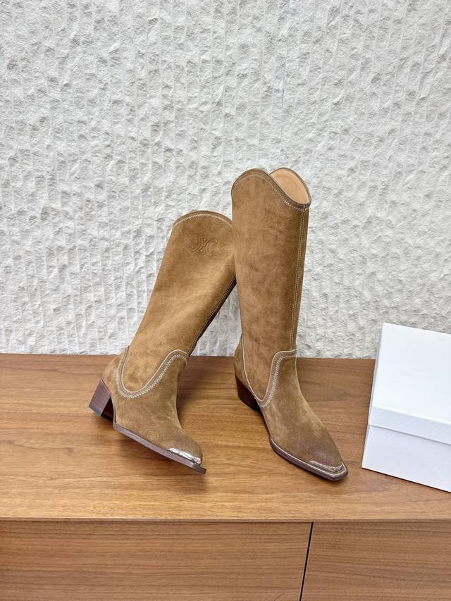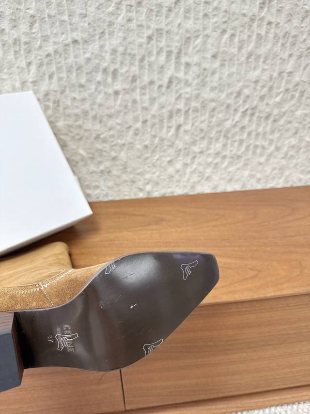 Niu Jing G299 Celine 25Ss Autumn/Winter New Retro Chunky Heel Chelsea Pointed Toe Iron Buckle Long Boots