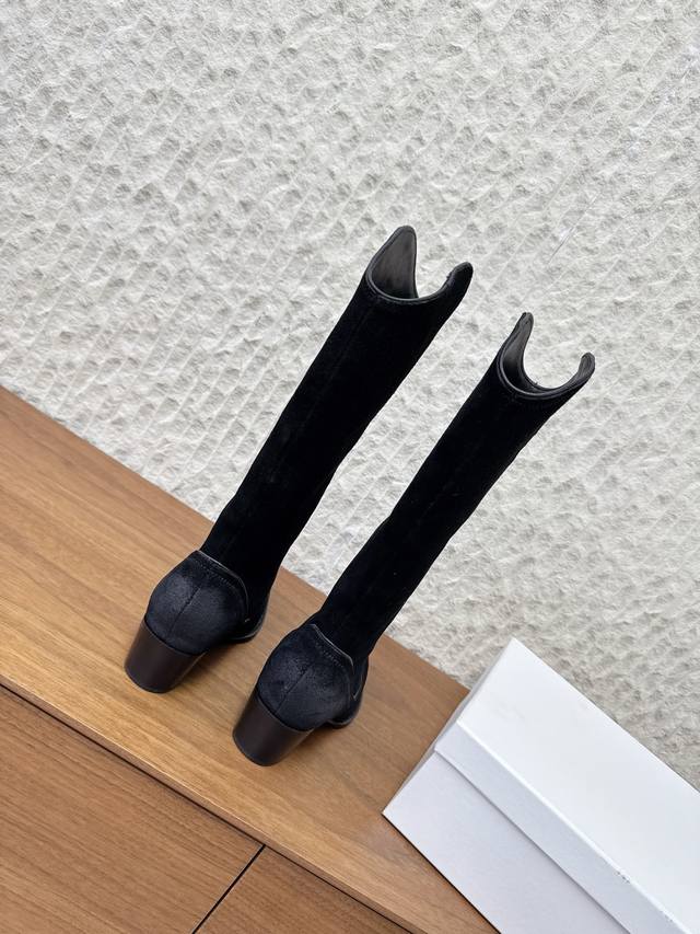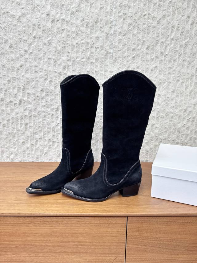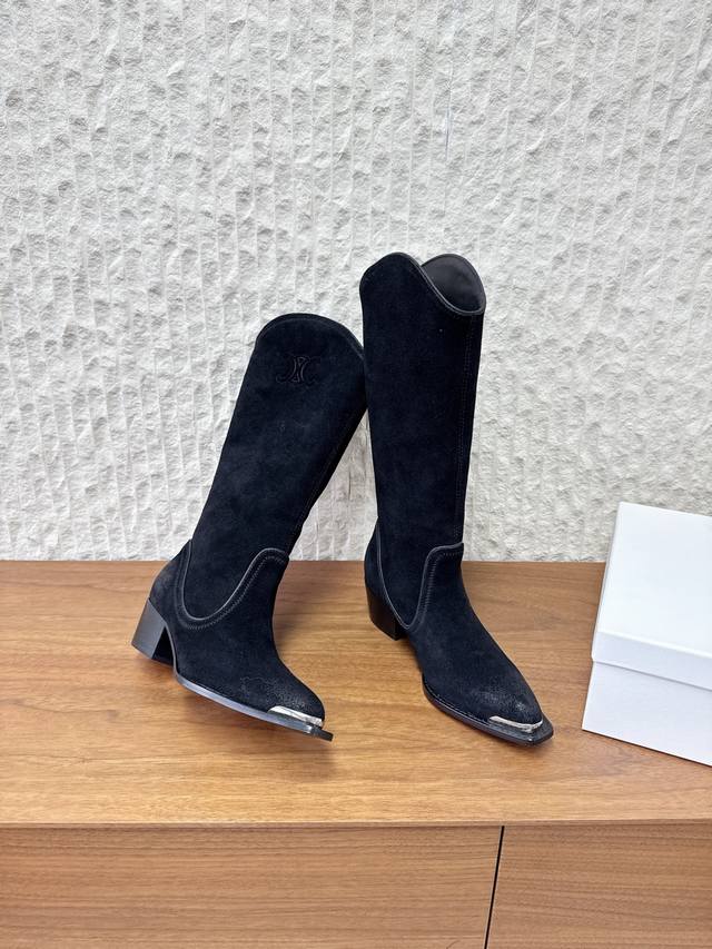 Niu Jing G299 Celine 25Ss Autumn/Winter New Retro Chunky Heel Chelsea Pointed Toe Iron Buckle Long Boots
