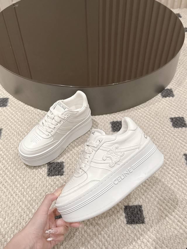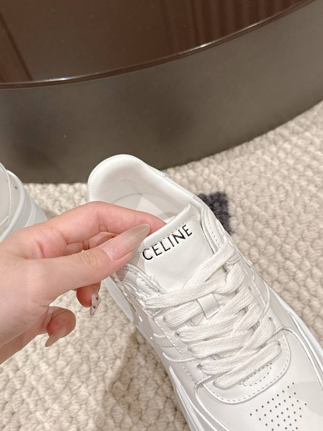 p. Sizes 35-40, 41, custom-made with full upper and painted edges. Celine's new 2025 Spring/Summer Arc de Triomphe logo lace-up shoes are simple, comfortable, clean, and slim-fitting. Whether worn alone or with wide-leg pants, they're both high street and retro. Be a Celine girl! These Celine sneakers perfectly blend exquisite craftsmanship with fashionable design, and every detail reveals the brand's ingenuity. If you're looking for a comfortable and stylish pair of sneakers, consider these. I'm sure you'll fall in love with their unique charm.