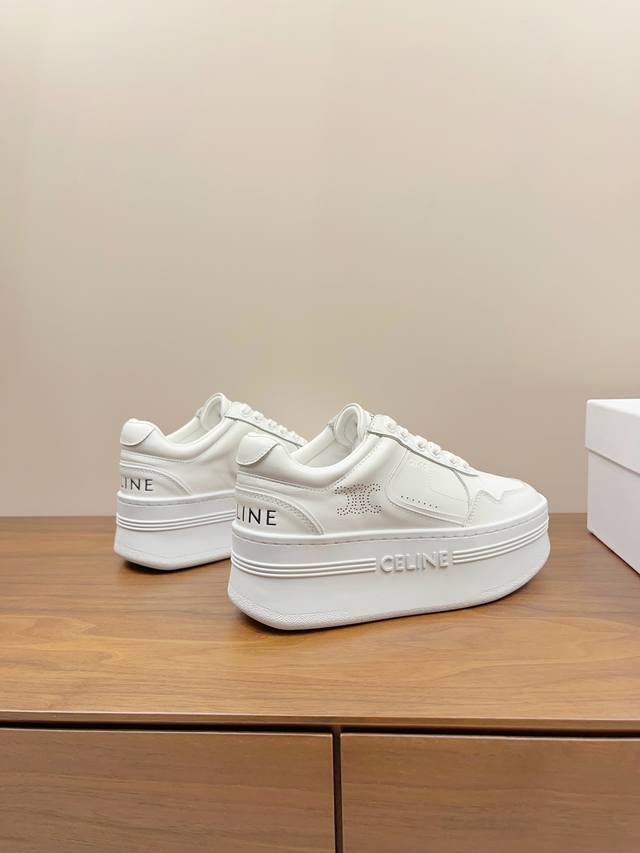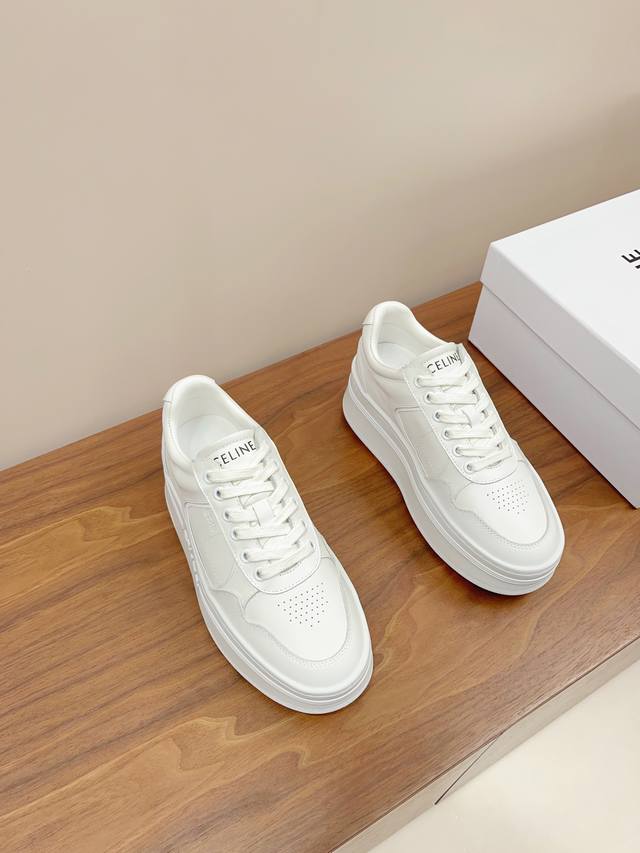 Celine's new white sneakers, worn by Liu Wen, Yang Mi, and Lisa. Celine's pieces are both gorgeous and practical, their texture fitting the seemingly contradictory style of casual glamour. Their leather goods and accessories, from bags and shoes to ties and scarves, emphasize pragmatism on a luxurious foundation. These Celine sneakers are a streetwear-inspired pair. A shoe cabinet is always missing a pair of white sneakers, and this year's new Celine sneakers are the perfect choice. Unlike the ubiquitous Air Jordans, Celine's white sneakers have their own unique design. The leather upper is easy to care for, and the design is unique and ingenious. The logos on the side and heel make them simple yet balanced. A perfect pair of white sneakers ~~