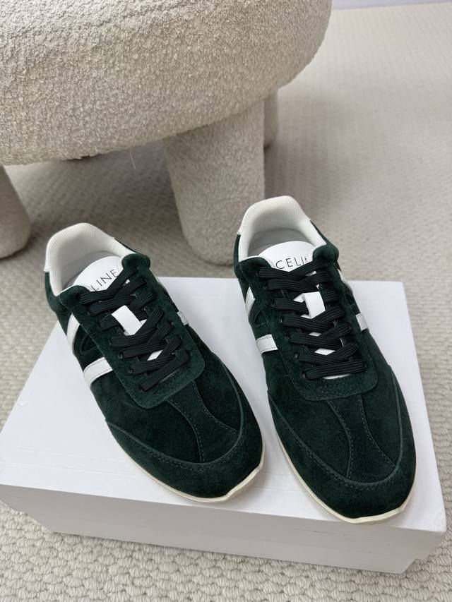 Top Quality Celine Ss25 New Arrival ~ Celine's New Triomphe Series Sporty Casual Shoes | Classic design! Cool and versatile, perfect for both sporty outfits and casual everyday wear. Easily elevates the overall look. These shoes fit the foot perfectly, look great, and are comfortable to wear. Be a Celine girl! Upper: Original custom high-gloss suede cowhide Lining: Breathable mesh + leather Outsole: Original molded rubber outsole Size: 35-41 40 41 Made to order, no returns or exchanges