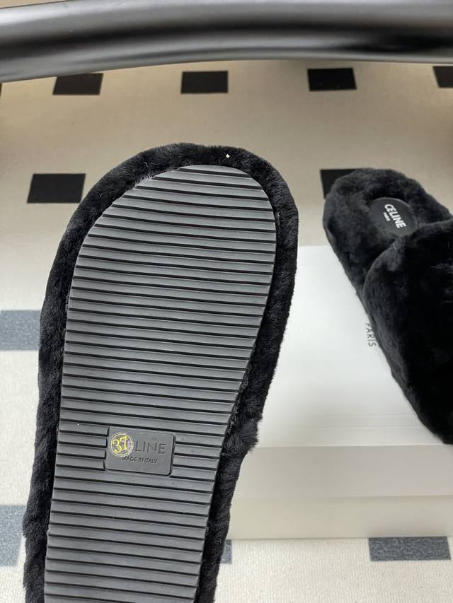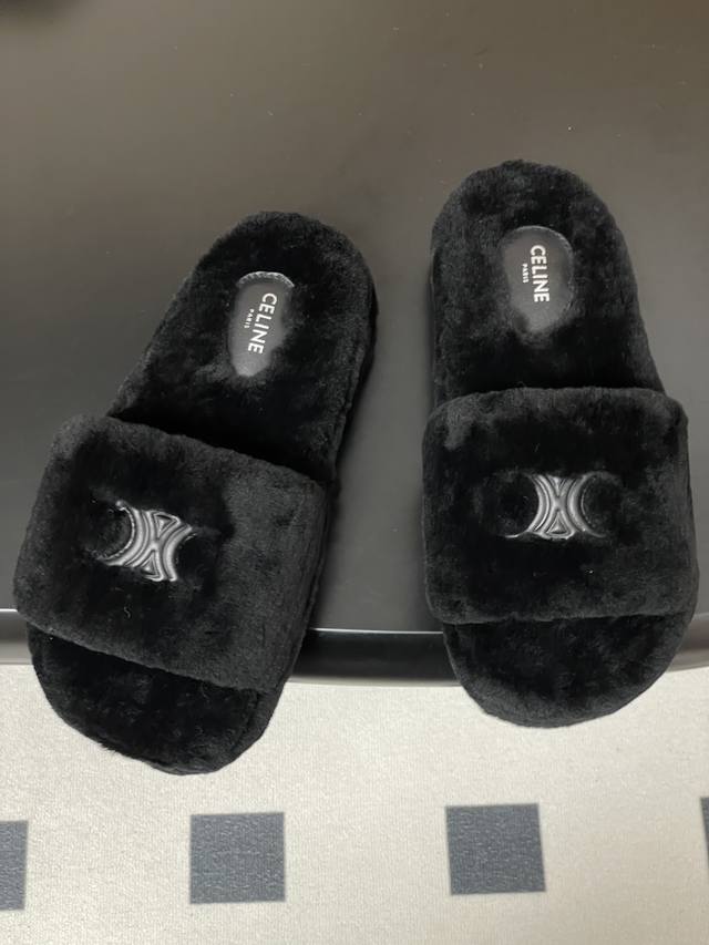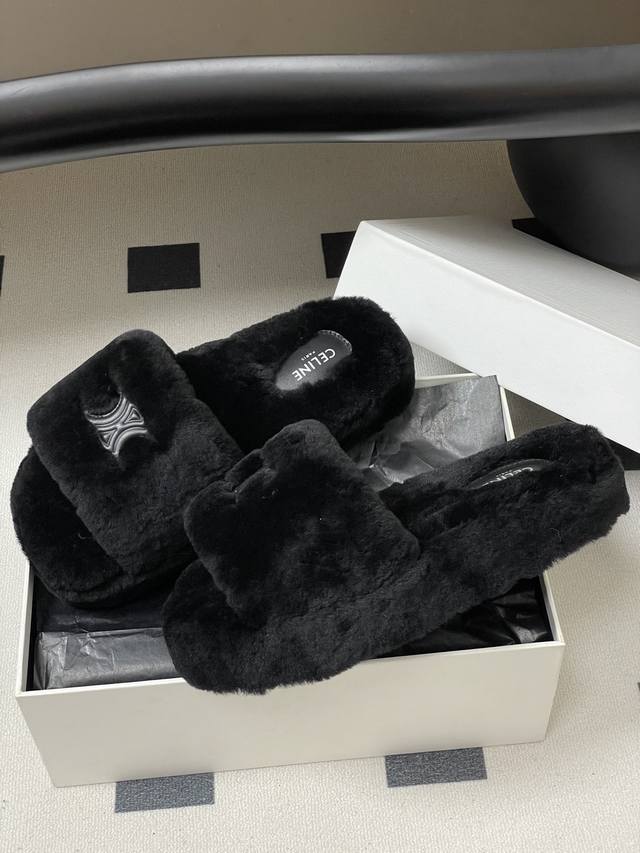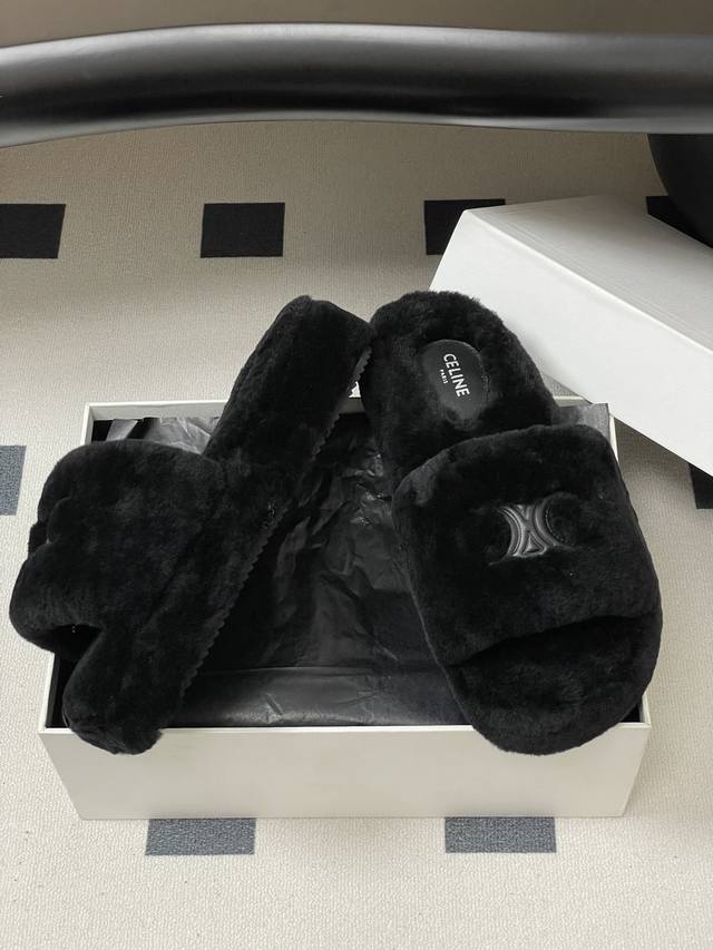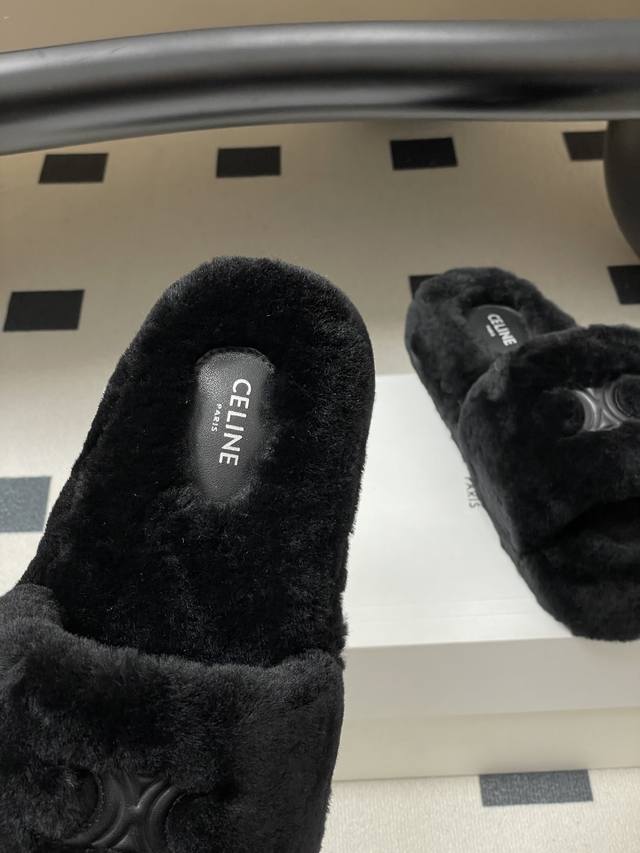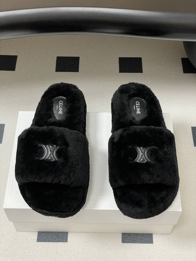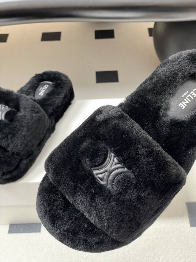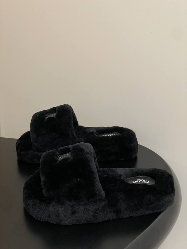 25Fw new fall/winter Celine Arc de Triomphe thick-soled slip-on wool slippers
