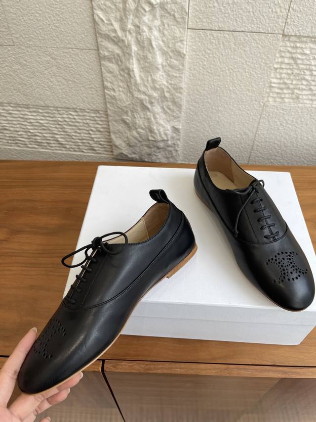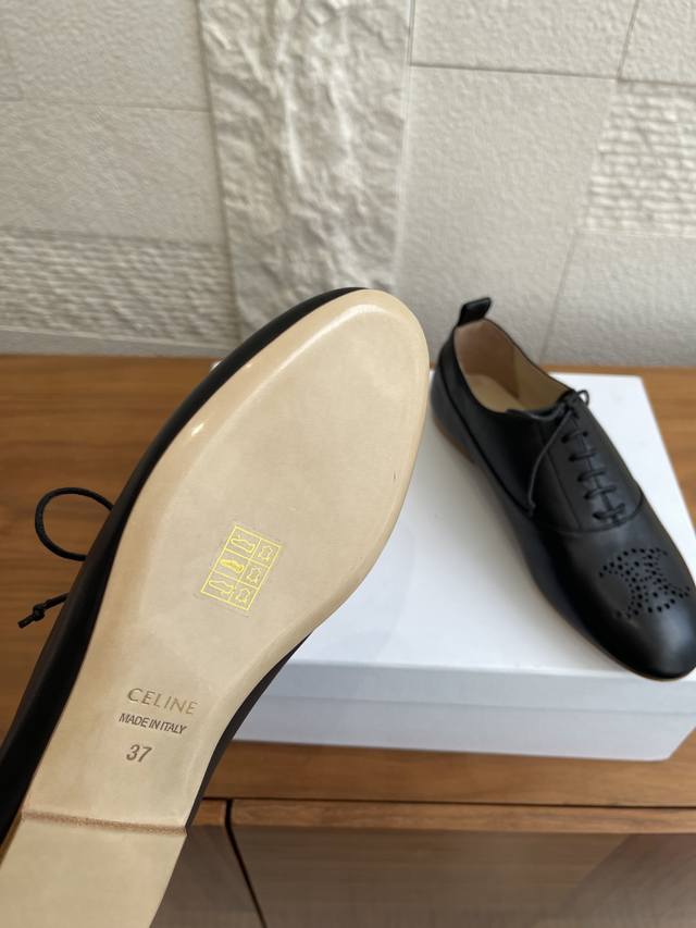 Top Version: Celine 2025 Early Autumn New Arrival Lise Triomphe Perforated Logo Sneakers Loafers. These Celine perforated loafers are made of high-quality leather with a breathable perforated upper, offering a simple yet sophisticated look. The lightweight and durable rubber sole makes them suitable for everyday commuting or casual wear. The classic lace-up design and low-top style are versatile and flattering, easily paired with jeans or skirts. The soft lining ensures comfort even after long walks. Celine exudes understated luxury, practicality, and style, radiating quality, perfect for those who appreciate a refined lifestyle. Material: Imported sheepskin; Lining: Imported sheepskin; Outsole: Italian imported genuine leather. Size: 35-40 (40 sizes are custom-made and non-refundable).