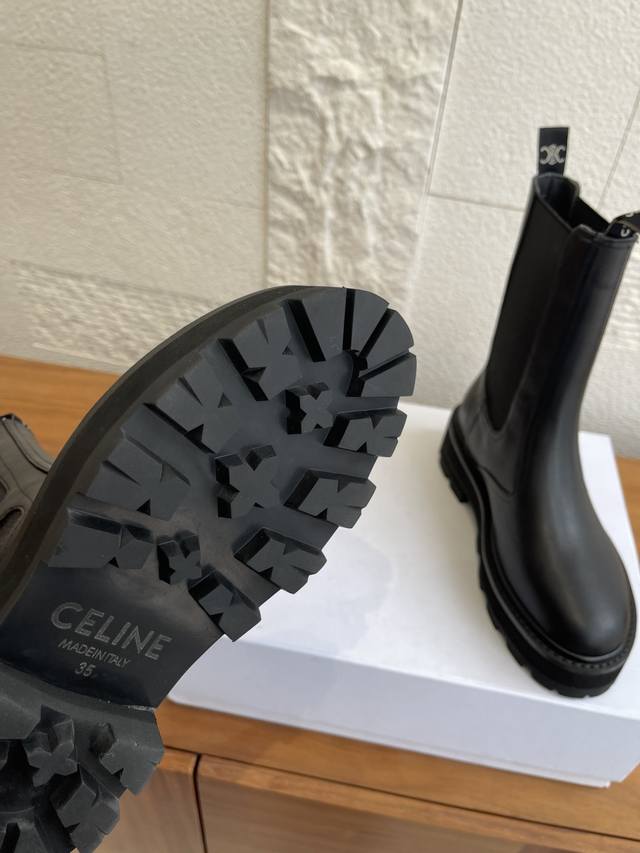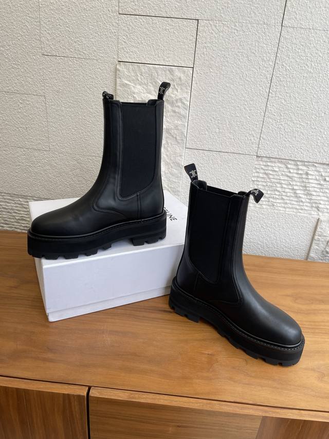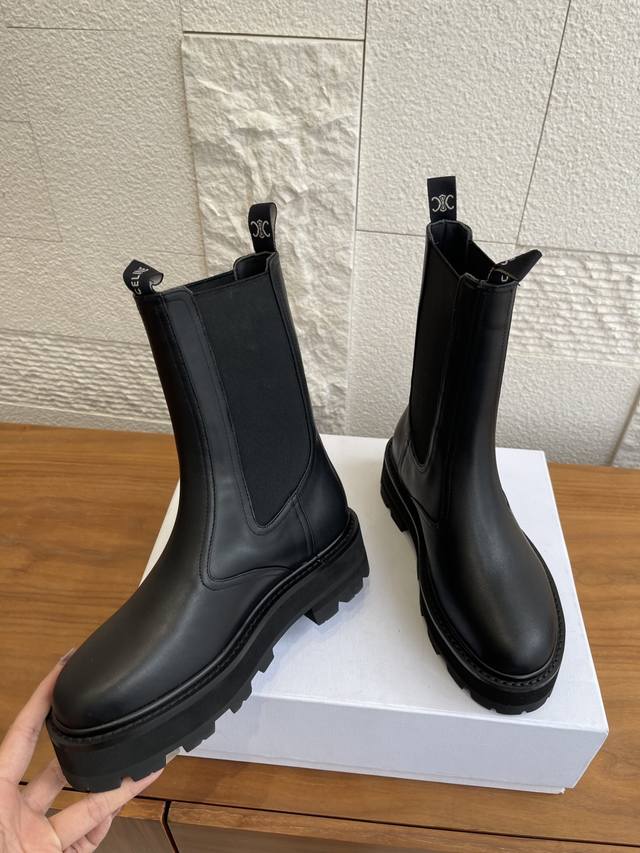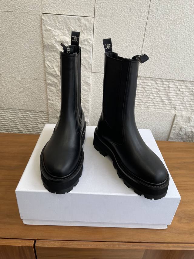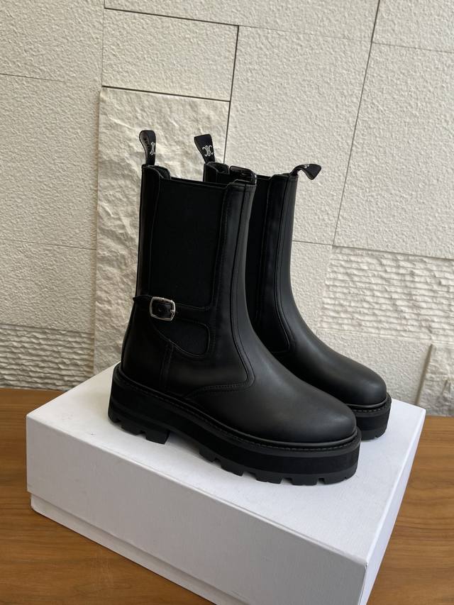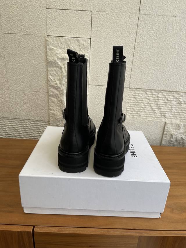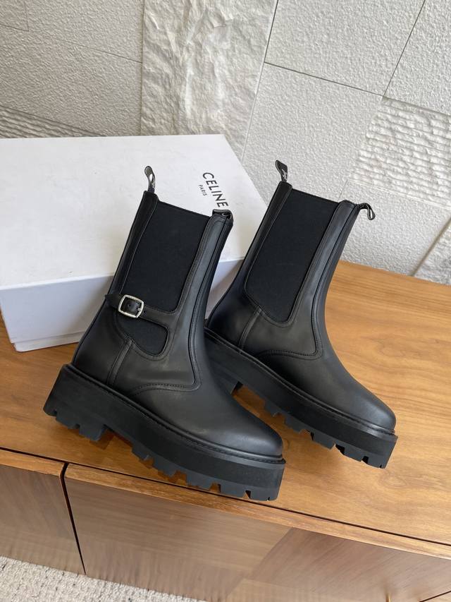 Top Version: DDD Celine 25 Autumn/Winter New Bulky Series Thick-Soled Chelsea Boots/Knight Boots DDD Celine Chelsea boots/Knight boots, featuring a cowhide upper with laces and buckles, understated yet distinctive. The soft and comfortable sheepskin lining and thick rubber outsole provide strong grip, are durable and wear-resistant. The round toe design is retro and versatile, and the moderate boot height flatters the legs without looking bulky. Perfect for pairing with coats and knit dresses in autumn and winter! DDD Material: Imported cowhide DDD Lining: Cowhide DDD Outsole: Original molded rubber combination outsole DDD Size: 35-41 40 & 41 are custom-made and non-refundable DDD