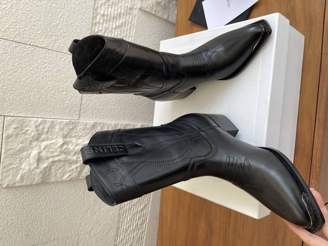 Celine 25Ss Autumn/Winter New Retro Chunky Heel Iron Buckle Pointed Toe Chelsea Boots. These Celine suede ankle boots are a stylish and versatile addition to your wardrobe. Inspired by natural beauty, they bring a relaxed and timeless feel to your footwear collection. The upper is crafted from luxurious elm tan suede. Made with imported raw materials and meticulous craftsmanship, these boots are the perfect choice for any fashionable and edgy woman.