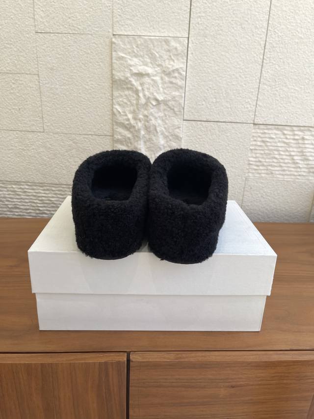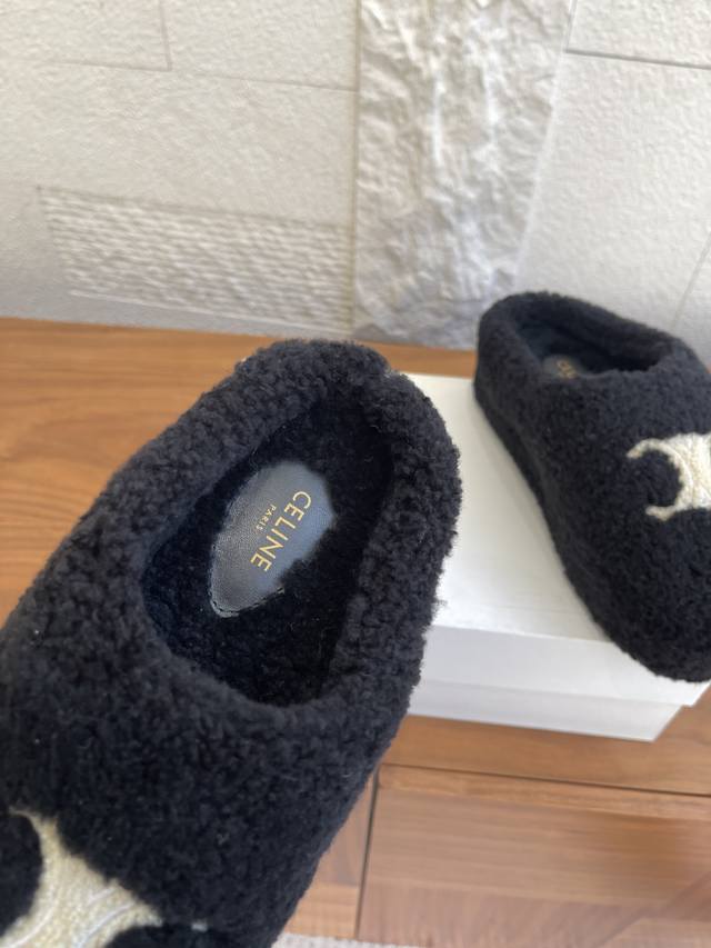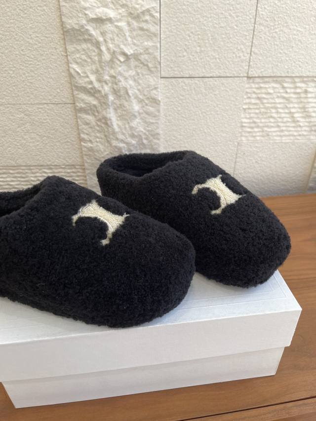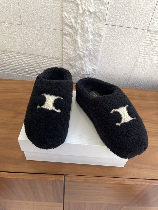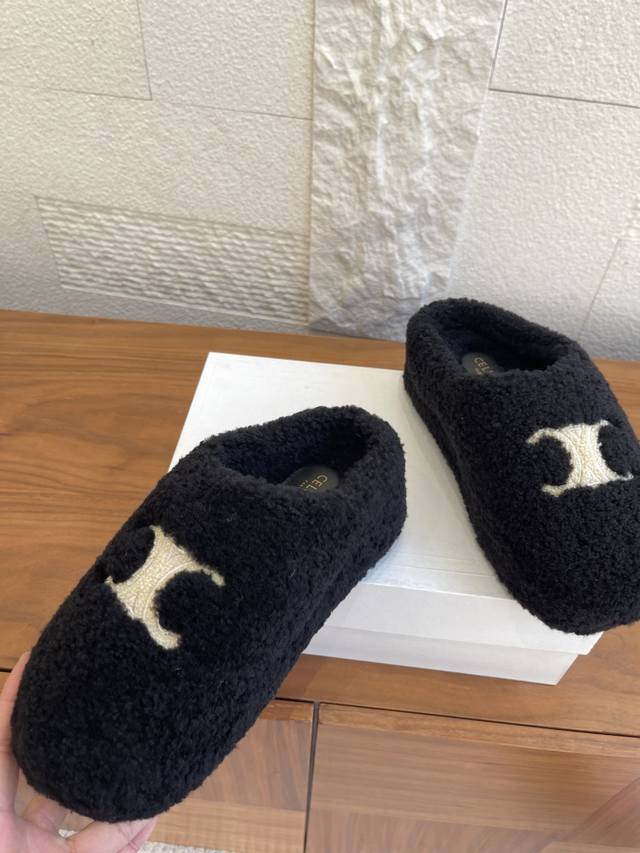 Celine 25Ss Autumn/Winter New Thick-Soled Slip-On Wool Closed-Toe Sandals. This winter, Celine will keep you warm and stylish! The thick sole provides unparalleled comfort and superior cushioning, making walking feel like walking on clouds. The design is fresh and elegant, harmonizing perfectly with any outfit. The most attractive feature is the soft, delicate fur surrounding the sole, offering the most tender care for your feet.
