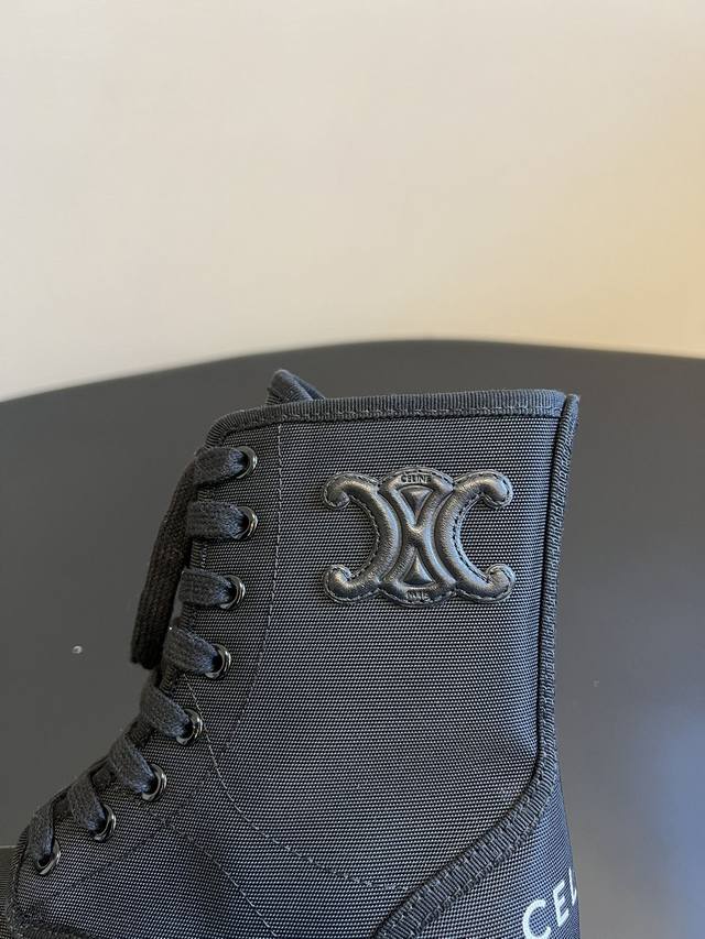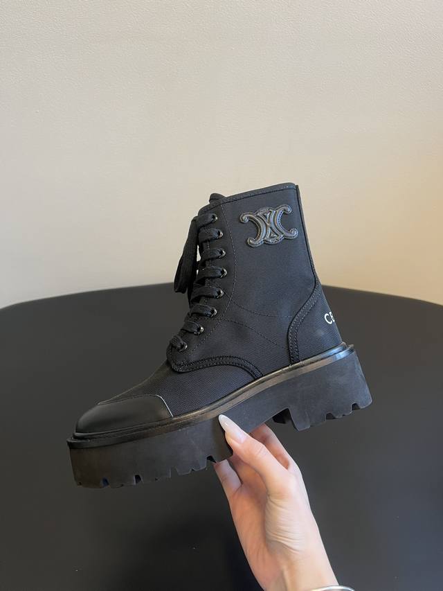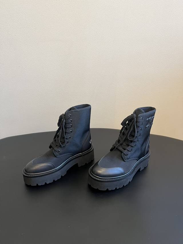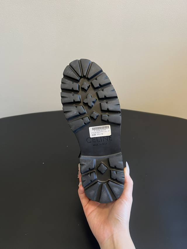Top-tier Celine 25Ss Arc de Triomphe Retro Thick-Soled Lace-up Dr. Martens Boots DDD The boots feature Celine's signature embossed lettering, exuding understated luxury and high-end recognition, embodying the brand's minimalist and sophisticated style. They utilize materials such as suede, matte leather, and glossy leather, with color schemes primarily featuring low-saturation earth tones and classic black, suitable for various minimalist outfits. DDD The thick sole with a retro pattern elongates the legs while ensuring walking comfort, adding a touch of relaxed style to the rugged Dr. Martens. They can be paired with neutral-style suits and wide-leg trousers, or with softer dresses and knitwear, balancing coolness and elegance. DDD Upper: Cowhide/Sheepskin Ddd Lining: Sheepskin Fabric Ddd Outsole: Genuine Leather Welt and Foam Sole Ddd Height Increase: 4.5cm Ddd Size: 35-41, Sizes 40 and 41 are custom-made and non-refundable DDD