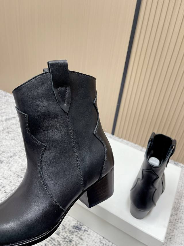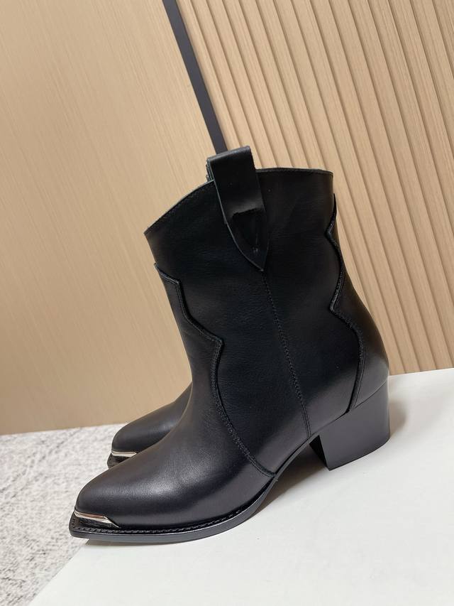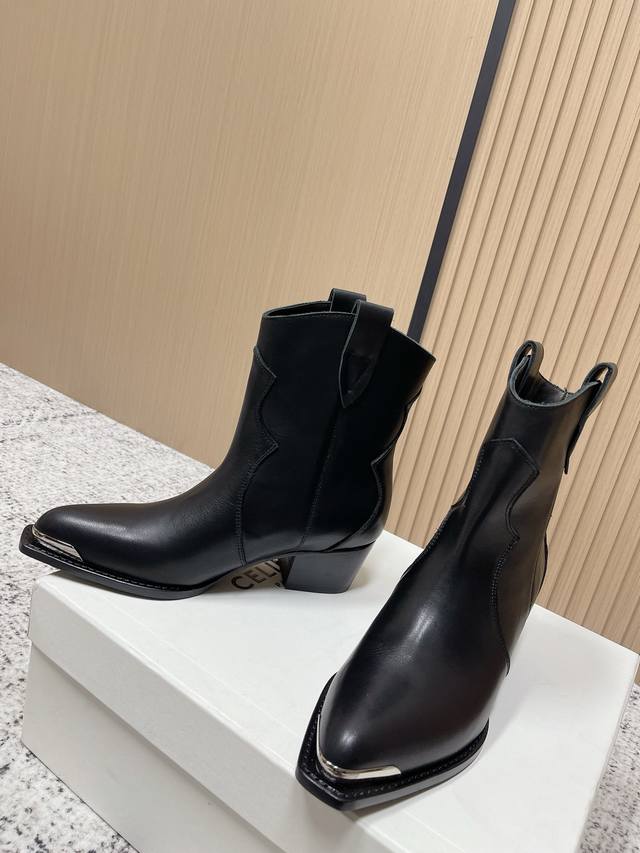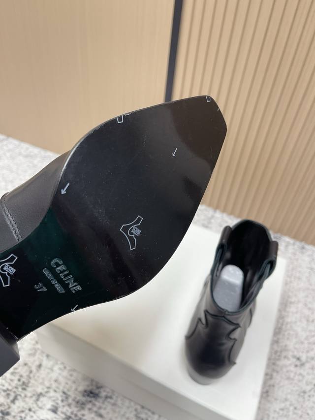 Top-tier version: Celine 2025 Autumn/Winter New British Style Retro High-Heeled Ankle Boots/Knight Boots. Combining modern, traditional, and cool styles, these boots feature premium materials and unique details. The finished product is highly fashionable and timeless. A must-have for early autumn, pairing well with dresses and skinny jeans. Made with imported high-gloss calfskin suede, featuring an ultra-fine cowhide lining, original leather upholstery, and a luxurious Italian leather sole. Full leather construction for high-end customization. Heel height approximately 6.5cm. Sizes: 35-39, 40-41. Custom orders are non-refundable.