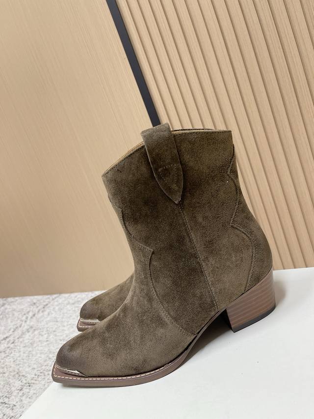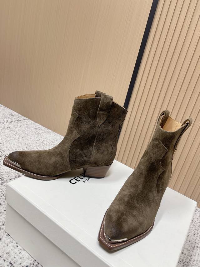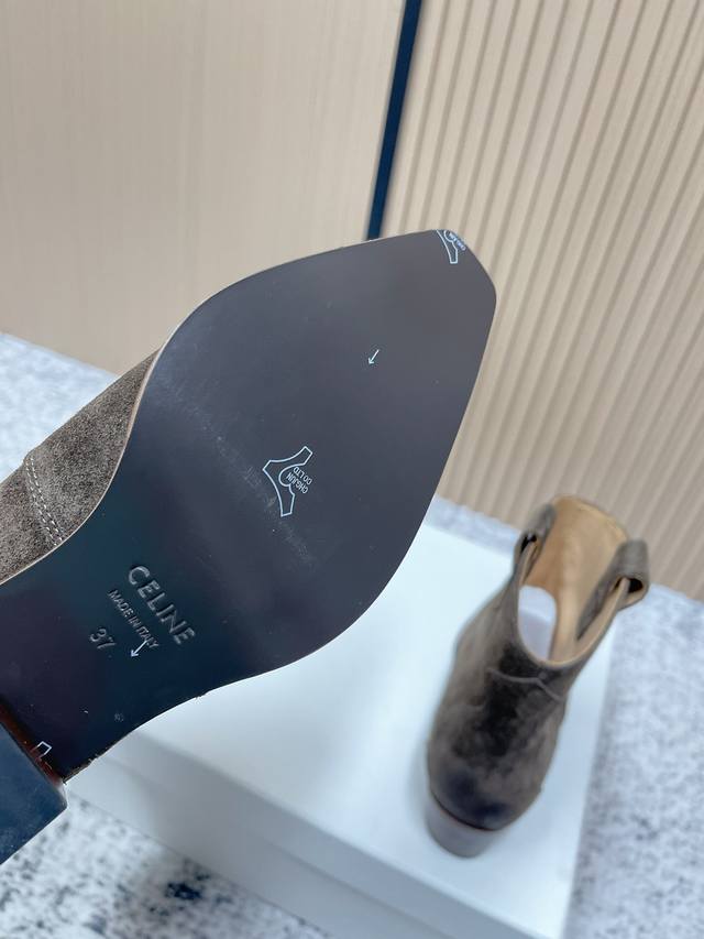 Top-tier version: Celine 2025 Autumn/Winter New British Style Retro High-Heeled Ankle Boots/Knight Boots. Combining modern, traditional, and cool styles, these boots feature premium materials and unique details. The finished product is highly fashionable and timeless. A must-have for early autumn, pairing well with dresses and skinny jeans. Made with imported high-gloss calfskin suede, featuring an ultra-fine cowhide lining, original leather upholstery, and a luxurious Italian leather sole. Full leather construction for high-end customization. Heel height approximately 6.5cm. Sizes: 35-39, 40-41. Custom orders are non-refundable.