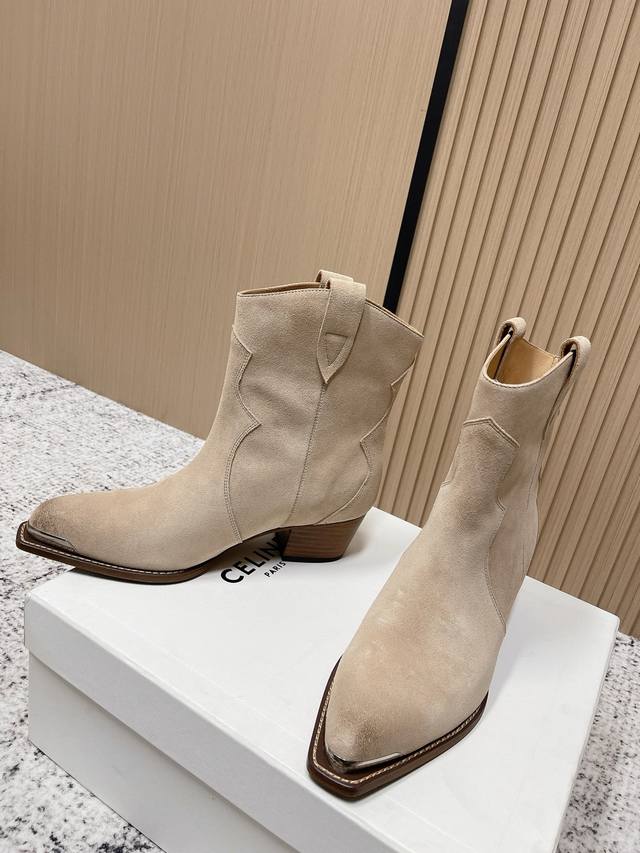 Top-tier version: Celine 2025 Autumn/Winter New British Style Retro High-Heeled Ankle Boots/Knight Boots. Combining modern, traditional, and cool styles, these boots feature premium materials and unique details. The finished product is highly fashionable and timeless. A must-have for early autumn, pairing well with dresses and skinny jeans. Made with imported high-gloss calfskin suede, featuring an ultra-fine cowhide lining, original leather upper, and Italian luxury genuine leather sole. Full leather construction for high-end customization. Heel height approximately 6.5cm. Sizes: 35-39, 40-41. Custom orders are non-refundable.