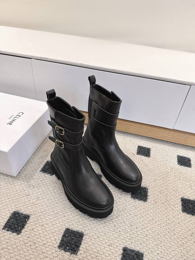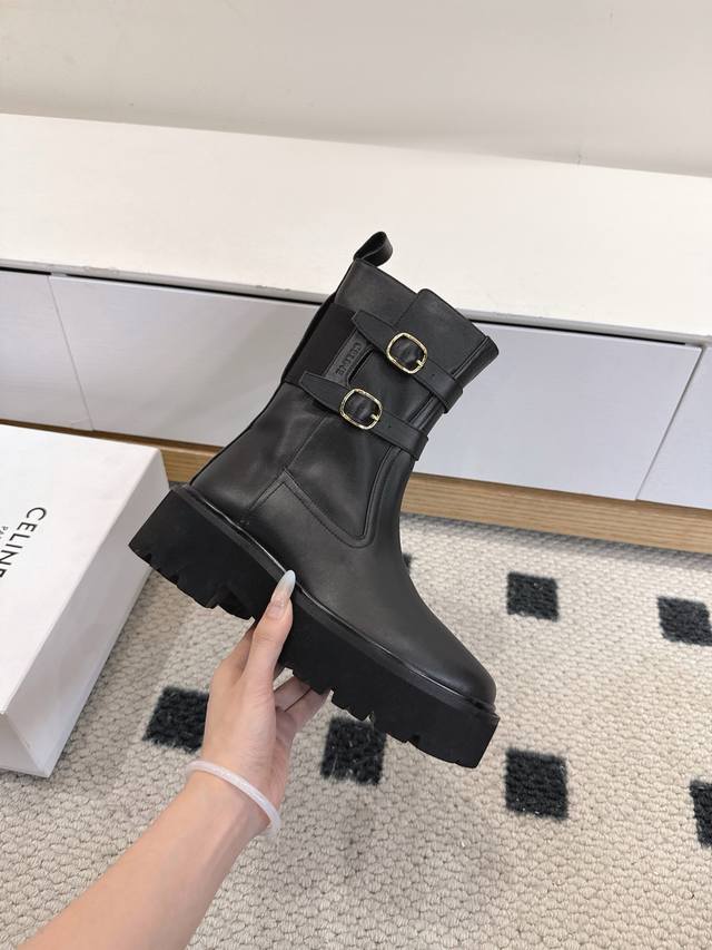 Top-tier version DDD Celine 25 Fall/Winter latest runway style riding pants boots DDD Absolutely stunning! They're incredibly popular lately, truly timeless and the more you look at them, the more you love them! These combat boots are perfect for fall and winter. The thick sole is super comfortable, and they effortlessly elongate your legs!!! Wearing them instantly makes you look like a supermodel, no exaggeration! They give you a supermodel-like, 1.8-meter-tall look! My absolute favorite shoes lately! Seriously! Everyone needs them, okay? I'd be heartbroken if I didn't have them! They look effortlessly chic with any outfit DDD Material: Original 1:1 custom-made cowhide upper DDD Lining: Cowhide lining DDD Outsole: Italian imported genuine leather DDD Size: #35-41 Sizes 40 and 41 are custom-made and non-refundable DDD