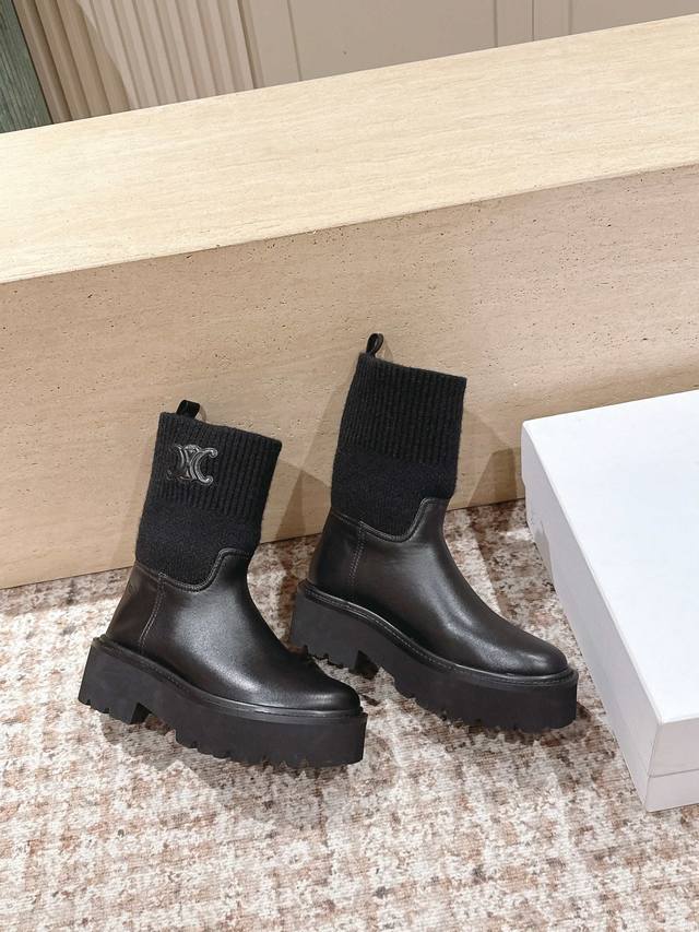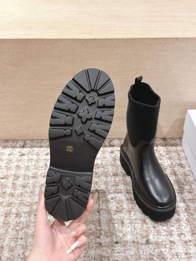 Top-tier version: Celine Fall/Winter 2025 boots. These boots are very fashionable at this height, very comfortable, and make your legs look longer! The sole is thick enough to provide a good height boost! Made with imported calfskin, adorned with the Arc de Triomphe logo. They have a premium feel and look incredibly stylish on your feet! Material: Custom grained calfskin, not ordinary market leather. Lining: Sheepskin lining. Outsole: Genuine leather welt combination outsole. Size: 35-41. Sizes 40 and 41 are custom-made and non-refundable.
