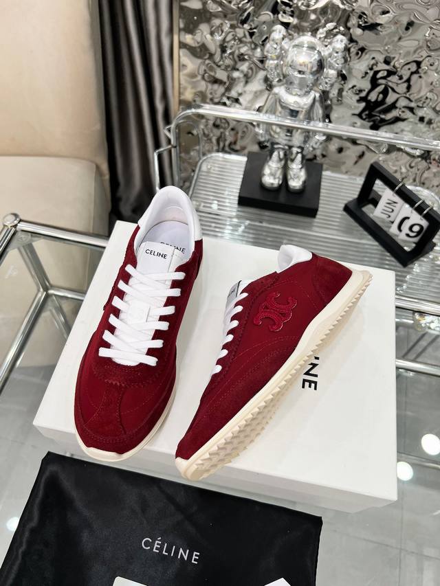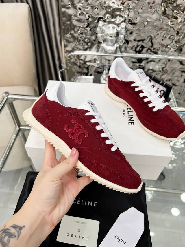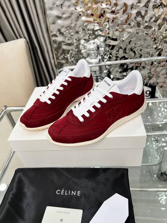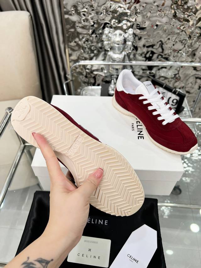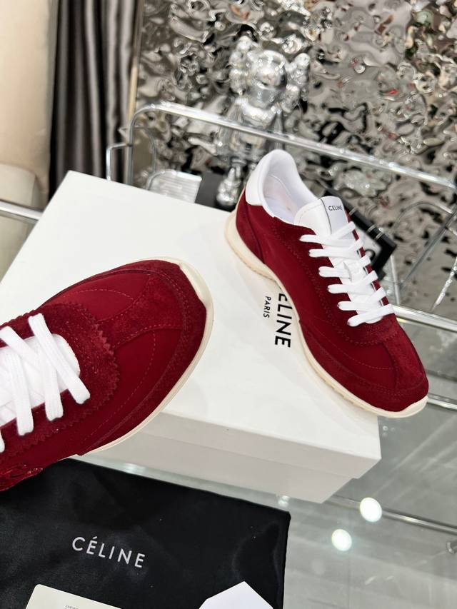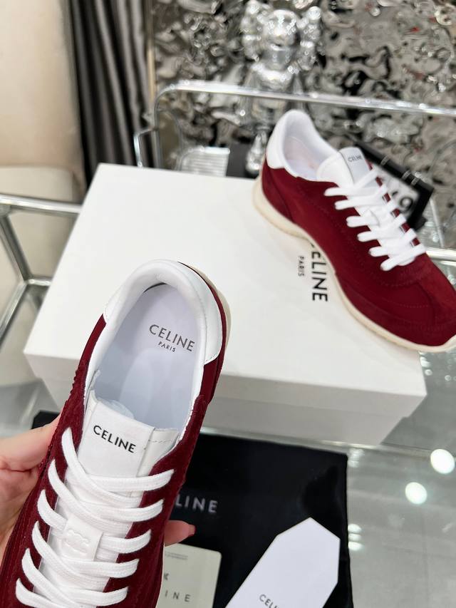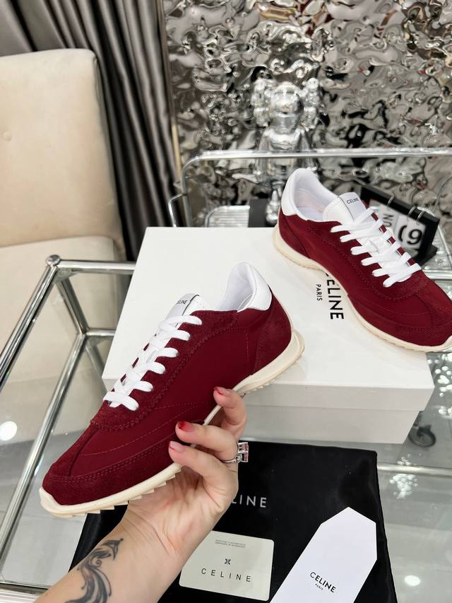 . The women's Celine Racer vanilla low-top sneaker exquisitely reinterprets 1970s sports style, blending nostalgic charm with modern elegance. As a new addition to the Celine footwear family, the Racer showcases effortless Parisian chic with a lightweight silhouette, providing all-day comfort.