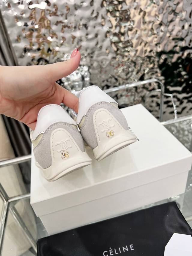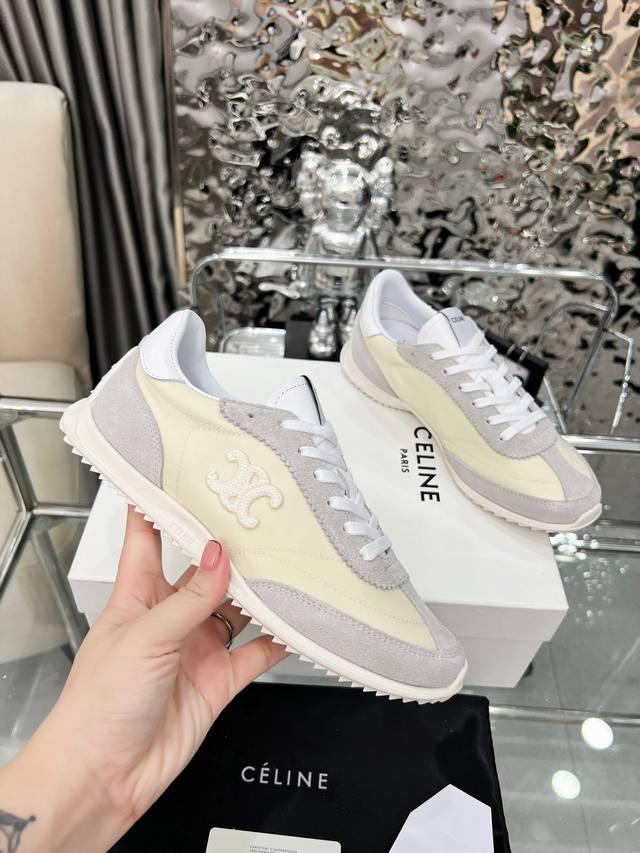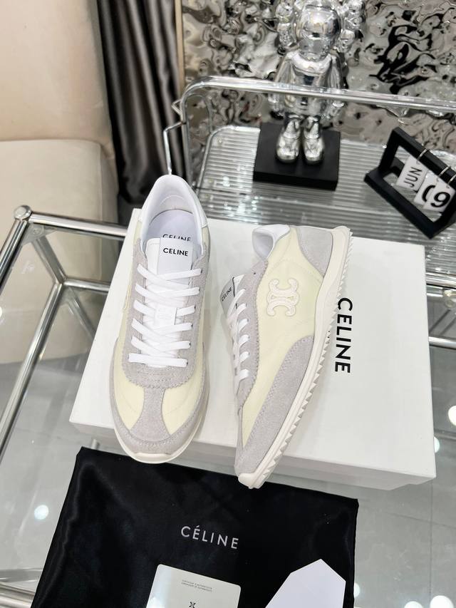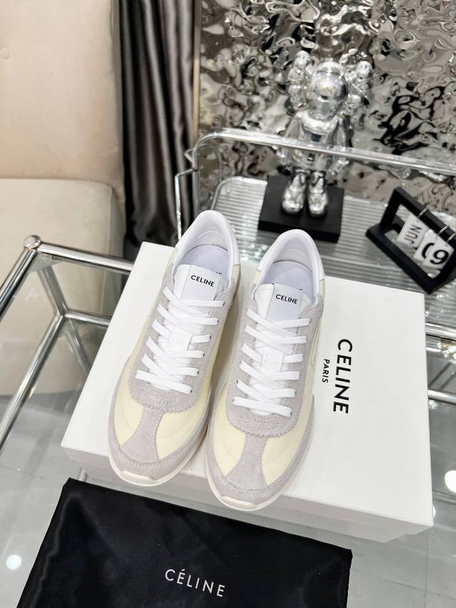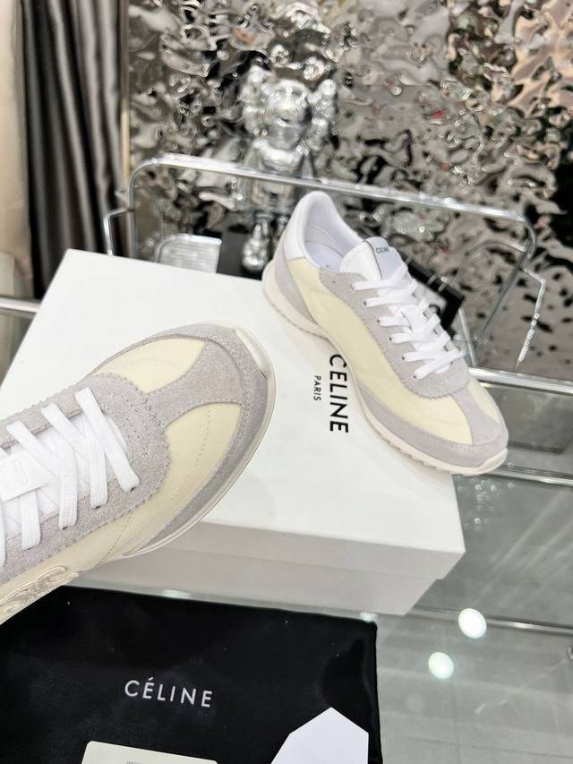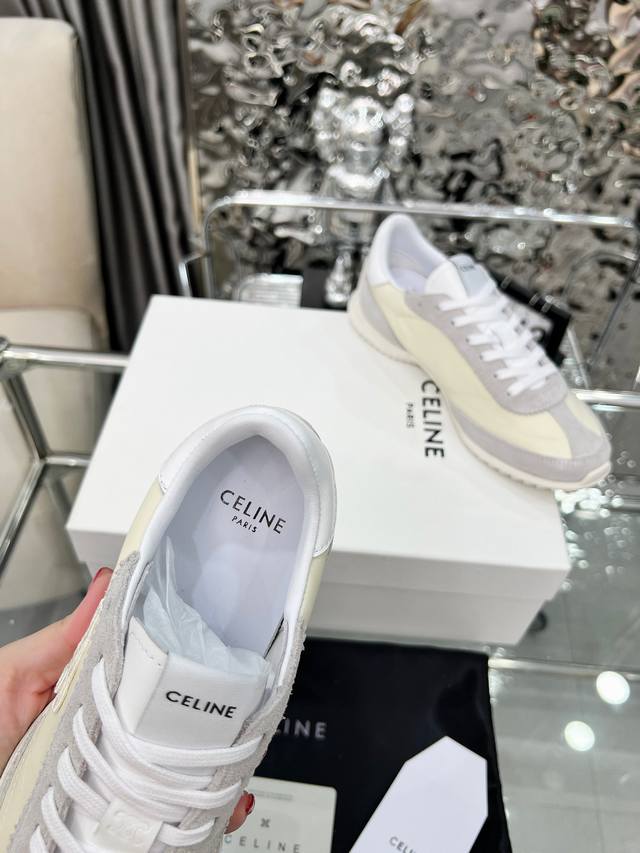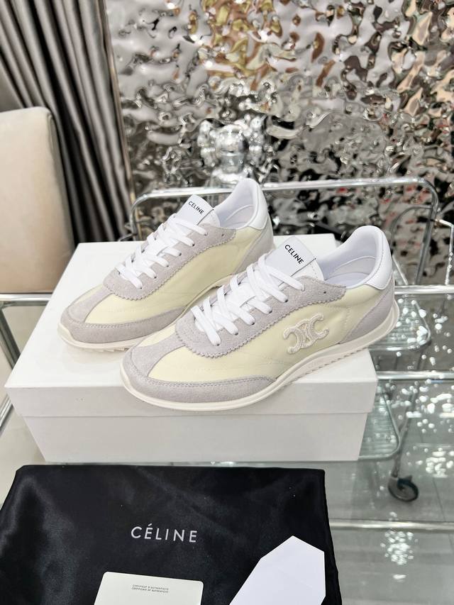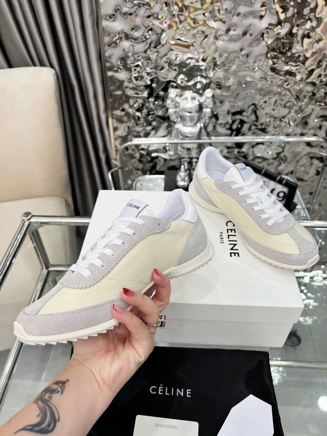 . The Celine Racer women's vanilla low-top sneaker exquisitely reinterprets the sports style of the 1970s, blending nostalgic charm with modern elegance. As a new member of the Celine footwear family, the Racer showcases effortless Parisian chic with a lightweight shoe shape, providing a comfortable experience all day long.