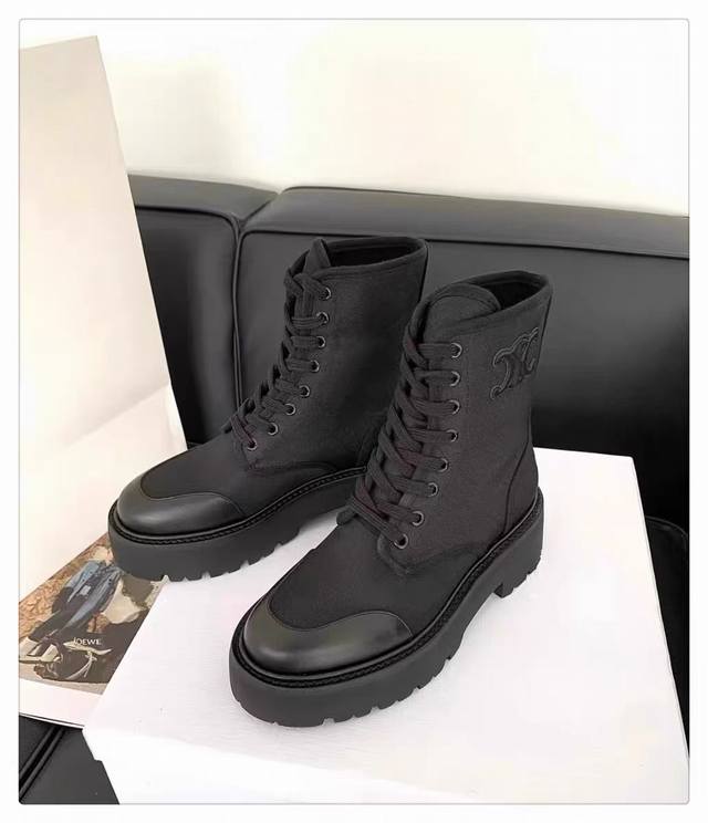 Factory direct price women's clothing, shoes, sportswear, original Celine Arc de Triomphe, Yang Mi's style autumn/winter Martin lace-up thick-soled flat chunky heel boots!! Material: top layer cowhide + denim faux sheepskin lining. Standard sizes: 35, 40, 41, 42. Custom orders are not returnable.