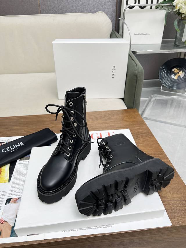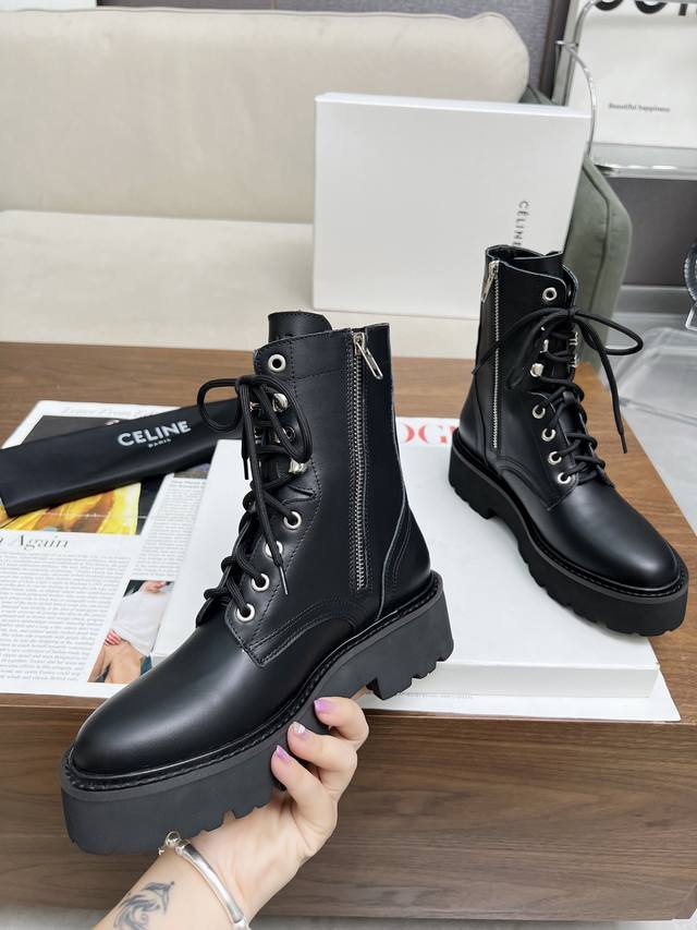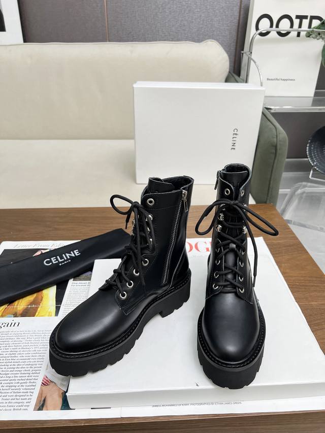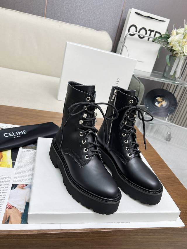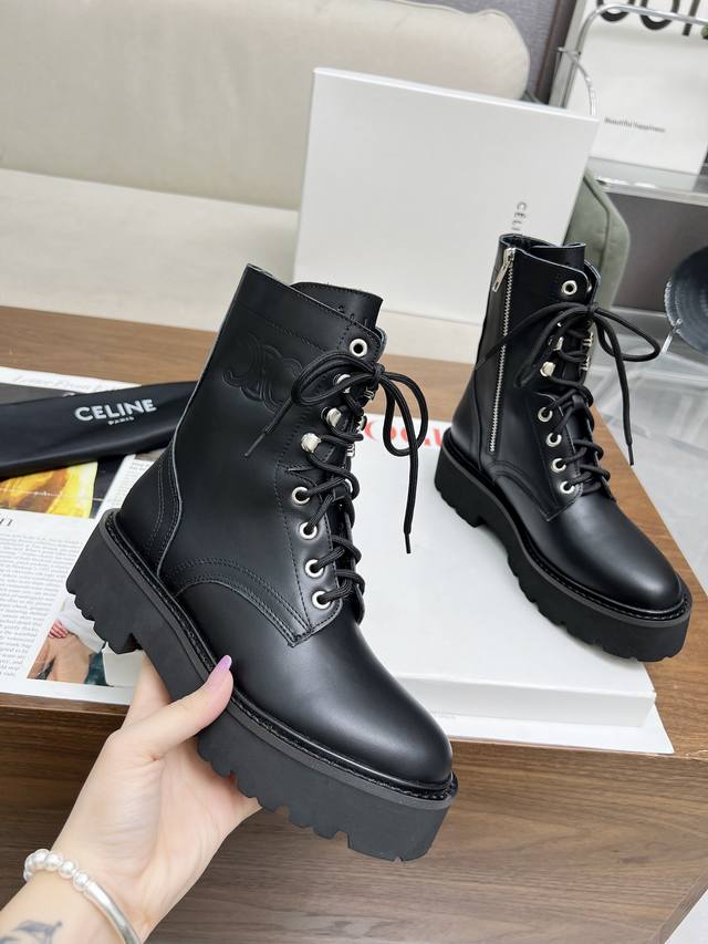Factory direct price women's clothing, shoes, sportswear, original single item, Celine Arc de Triomphe Martin lace-up platform flat chunky heel boots!! Top layer cowhide leather upper, sheepskin lining, standard sizes 35, 40, 41, 42. Custom orders, no returns.