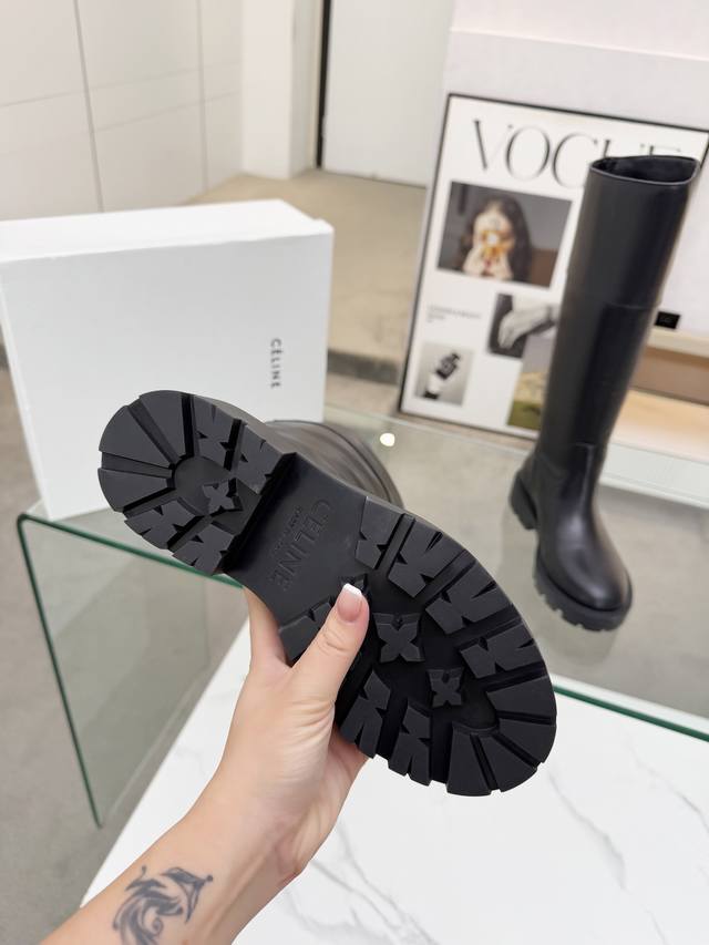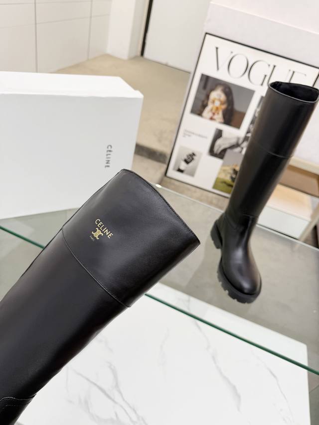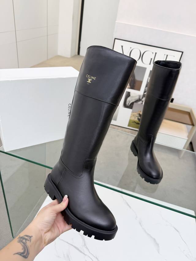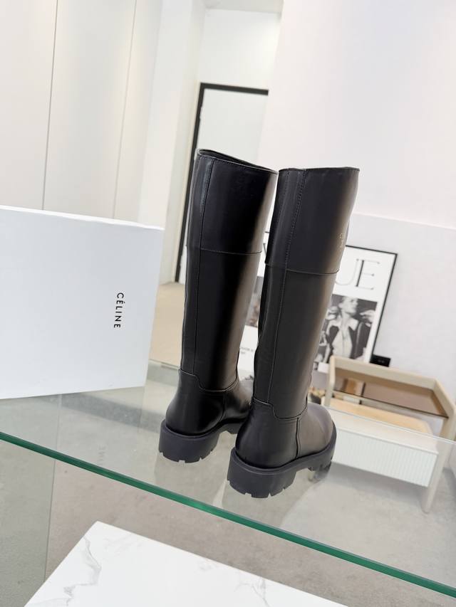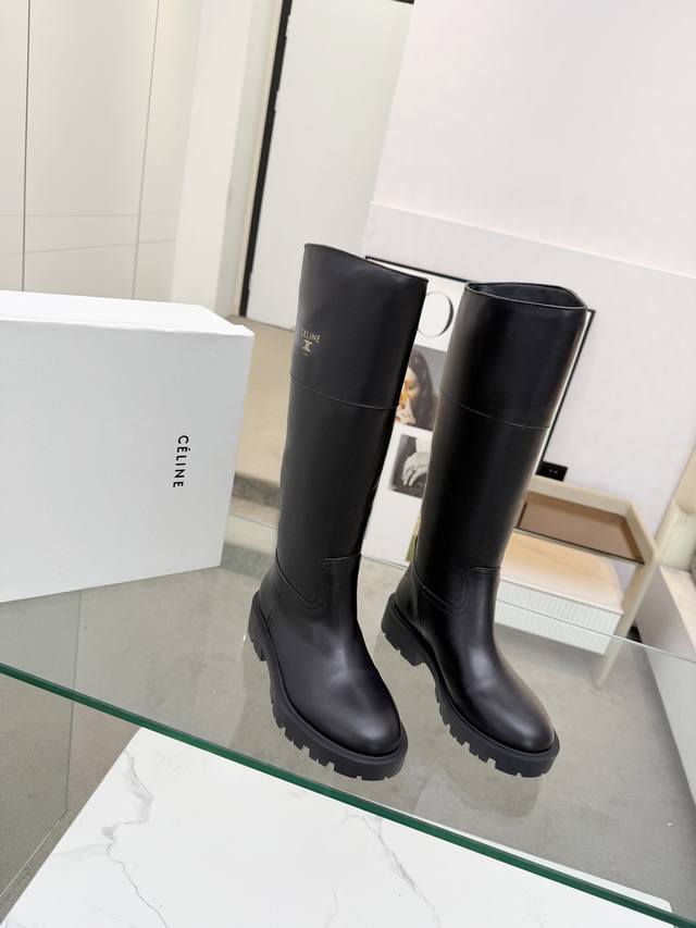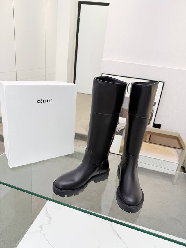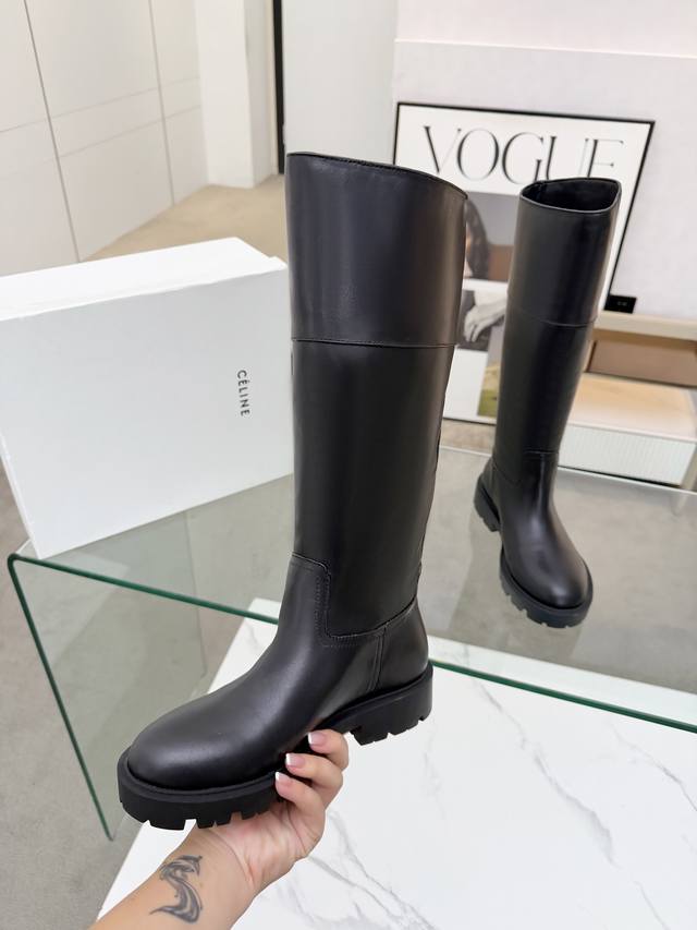 Factory direct price women's clothing, shoes, sportswear, original single item. Celine 2025 Autumn/Winter new slip-on riding boots with calfskin upper and oiled edge craftsmanship. A classic and timeless style. Lining: sheepskin; Outer material: top-grain calfskin. Sizes 35-41, size 41 is custom-made and non-refundable.