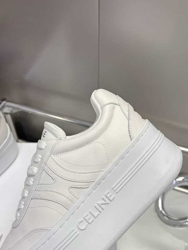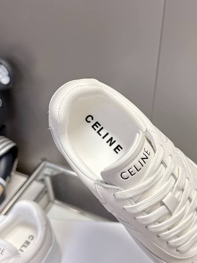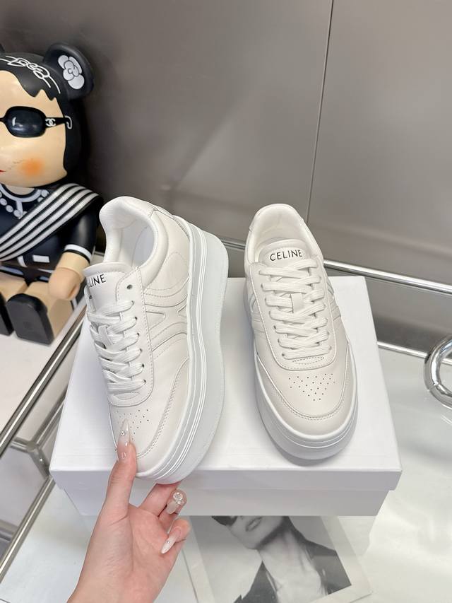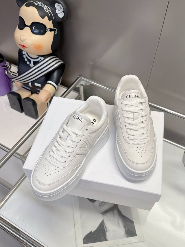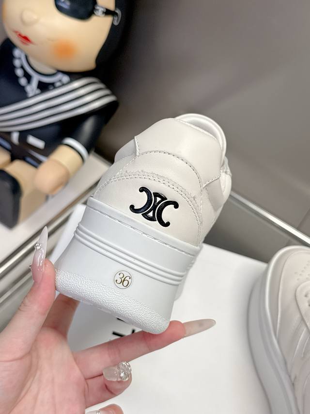 Factory direct price women's clothing, shoes, sportswear original. Sizes 35-40, 41 custom-made. Celine 2025 new style 5cm platform classic white sneakers, adorned with simple yet unique colorful lines, subtly exuding a sense of sophistication. Every detail is exquisite. The 5cm platform design subtly adds height without looking bulky, making walking super stable. Whether paired with a vibrant short skirt or casual jeans, it effortlessly creates a stylish look, a sure-fire way to turn heads on the street. A universally flattering choice, you can't go wrong with this! #CelineNewStyle #PlatformWhiteSneakers #2025FashionItem