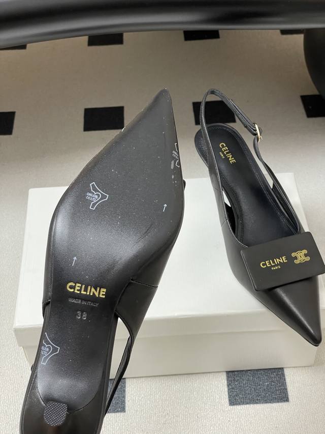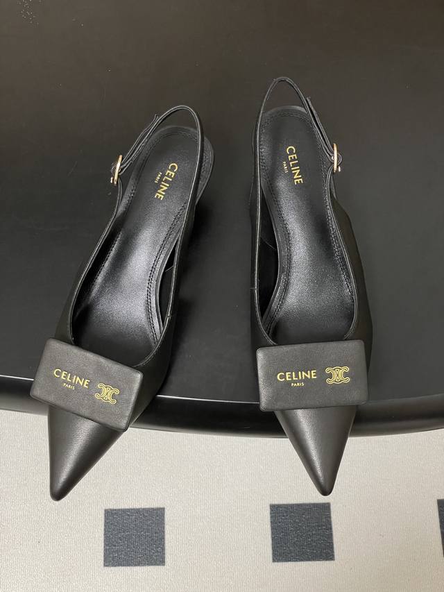 Factory Price- Ddd 26Fw Spring/Summer New Celine Arc de Triomphe Kitten Heel Business Card Shoes Square Buckle Open Back Sandals Ddd The texture is incredibly high-end! The "metal nameplate" design on the toe is amazing, combining brand recognition with a blend of French nonchalance and sophistication. The open back strap also makes the ankles look especially slender. Ddd The pointed toe makes the feet look incredibly beautiful, and the kitten heel provides stability while walking. It's suitable for commuting or dates. Paired with a black suit, it's for a "city elite," while with a skirt, it transforms into a "French beauty." It feels like you're not just wearing shoes, but a switch to high-end style! Every step seems to send a signal of "I'm expensive but easy to match," who can resist this kind of exquisite feel? Ddd The front of the shoe is decorated with a small Celine metal logo, understated yet highlighting brand recognition, and the brand name is also printed inside the shoe. The flat design with soft leather balances comfort and everyday practicality, suitable for commuting, leisure, and other occasions. Upper: Sheepskin Lining/Insole: Sheepskin Outsole: Italian genuine leather Sizes: 35-39 Sizes 40-41 are custom-made and non-refundable/non-exchangeable.