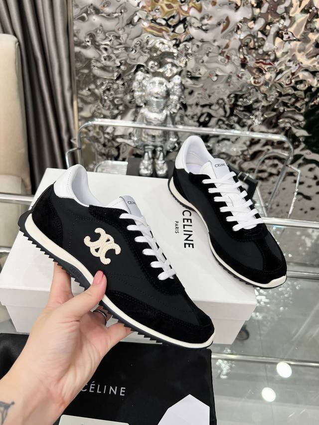 . The Celine Racer women's vanilla low-top sneaker exquisitely reinterprets the sports style of the 1970s, blending nostalgic charm with modern elegance. As a new member of the Celine footwear family, the Racer showcases effortless Parisian chic with a lightweight shoe shape, providing a comfortable experience all day long.