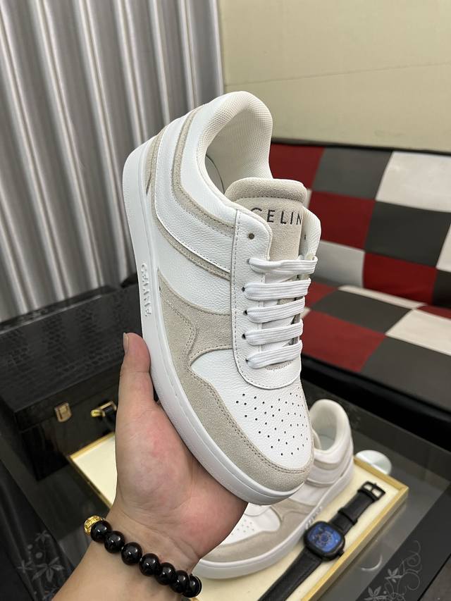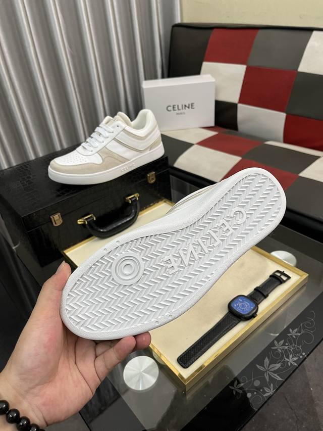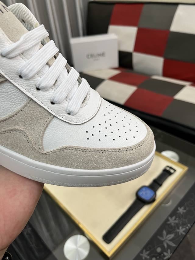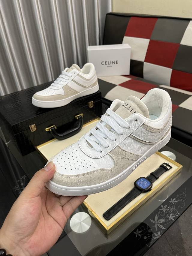 Factory Price (pp): Celine low-top cowhide leather lace-up sneakers; stylish, relaxed, and sophisticated, perfect for commuting or outings! Celebrity-endorsed, fashionable, versatile, and extremely comfortable, a true replica! Cowhide upper, breathable mesh lining, natural rubber outsole. Sizes: 38-442 available.