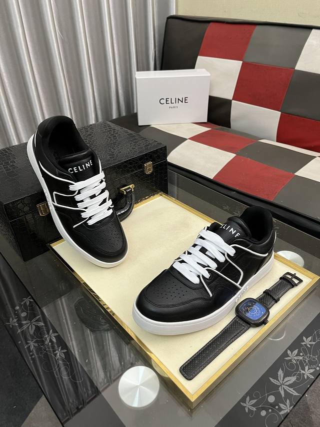 Factory Price (pp): Celine low-top cowhide leather lace-up sneakers; stylish, relaxed, and sophisticated, perfect for commuting or outings! Celebrity-endorsed, fashionable, versatile, and extremely comfortable, a true replica! Cowhide leather upper, breathable mesh lining, natural rubber outsole. Sizes: 38-442 available.