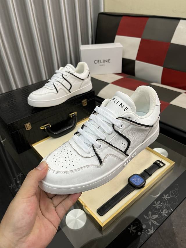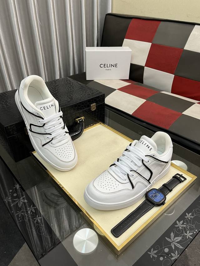 Factory Price (pp): Celine Low-Top Leather Lace-Up Sneakers; Stylish, relaxed, and sophisticated, perfect for commuting or outings! Celebrity-endorsed, fashionable, versatile, and extremely comfortable, a true replica! Leather upper, breathable mesh lining, natural rubber outsole. Sizes: 38-442 available.
