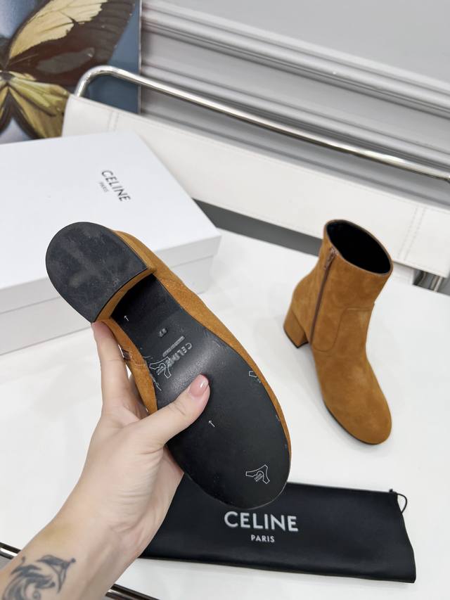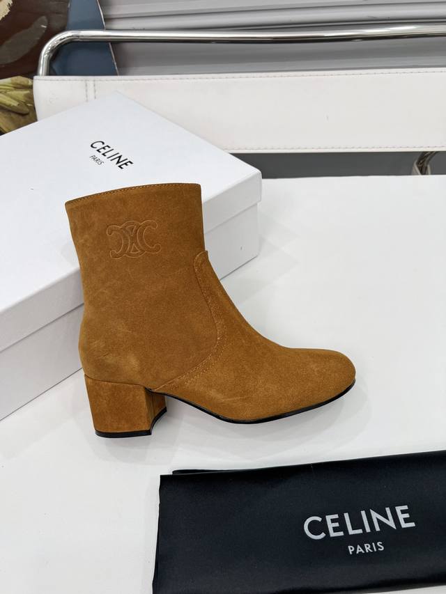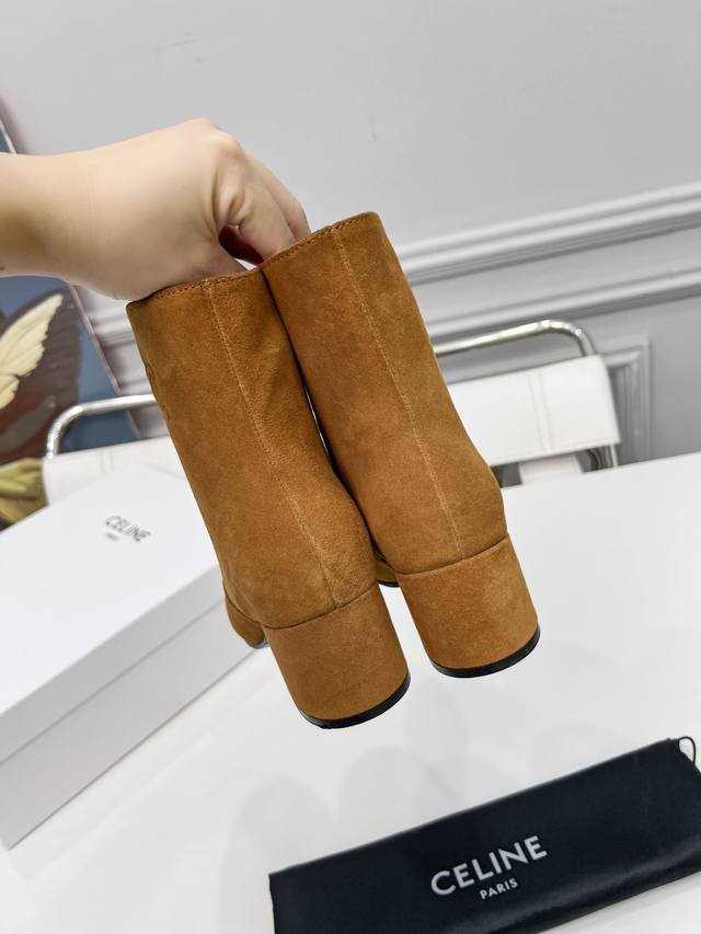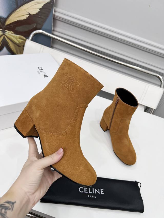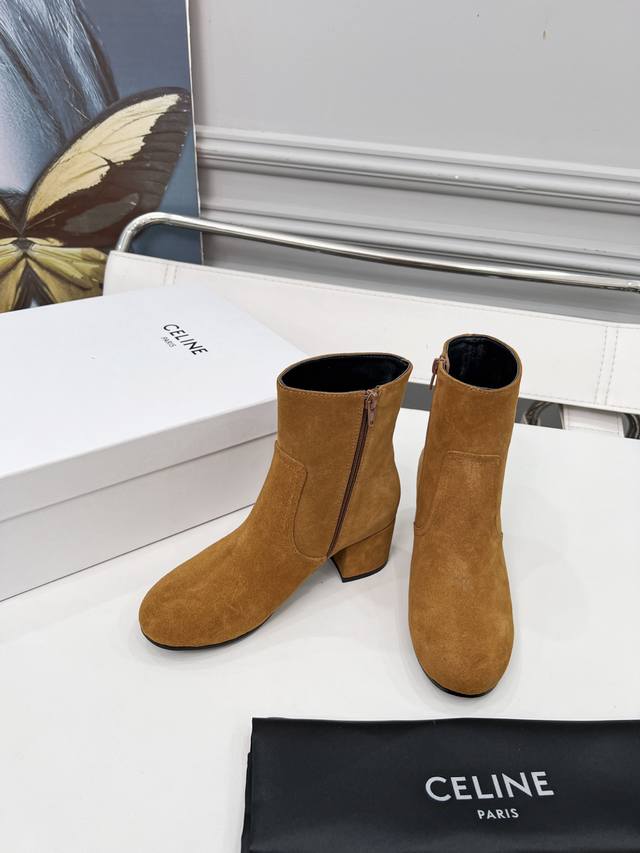 Factory price women's clothing and women's sports shoes original Celine Celine autumn and winter, chaebol daughter, zippered ankle boots, high mercerized suede, sheepskin lining, 5.5cm thick heel, genuine leather outsole, size 35-41