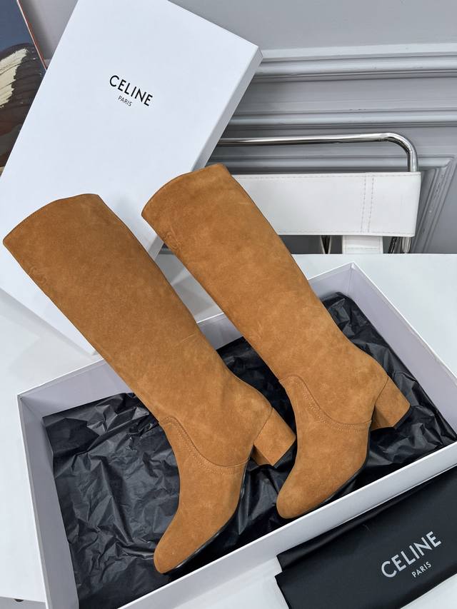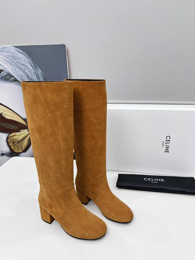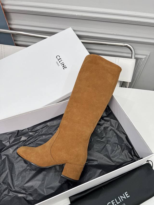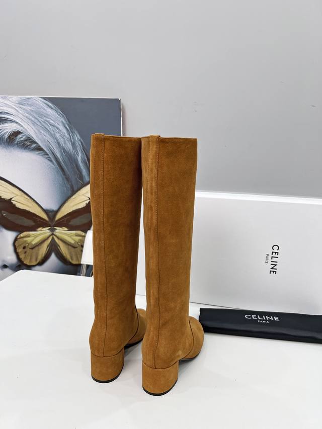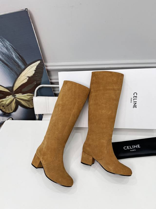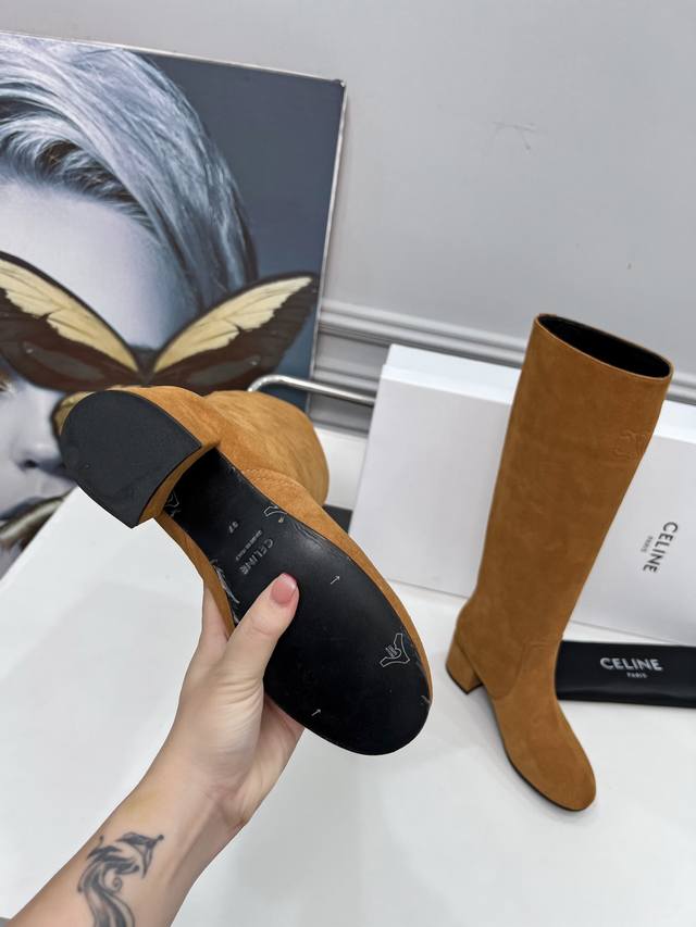 Factory Price Women's Shoes and Sportswear Original Celine Celine 2025 Autumn/Winter, Chaebol Daughter, Sleeveless Boots, High Mercerized Suede, Sheepskin Lining, 5.5cm Block Heel, Genuine Leather Outsole, Size 35-41