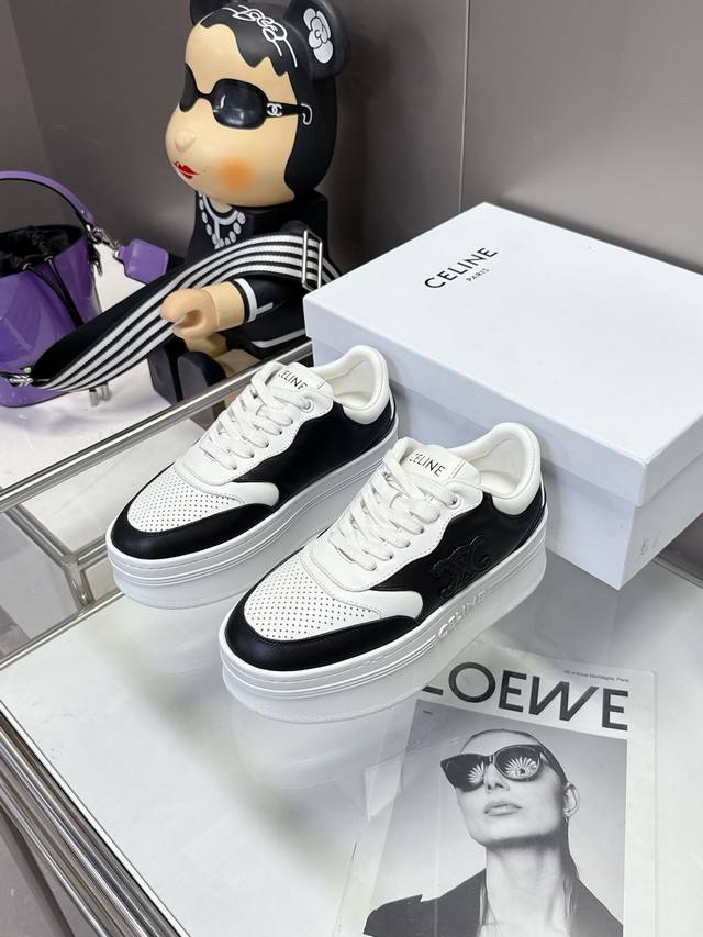 Factory Price Women's Shoes Original Celine 2025 Spring/Summer New Arc de Triomphe Logo Lace-Up Style. Simple, comfortable, clean, and slim-leg-enhancing. Whether worn alone or with wide-leg pants, this high-street and retro style is a Celine girl! This Celine sneaker perfectly blends exquisite craftsmanship with fashionable design, and every detail reveals the brand's ingenuity. If you're also looking for a pair of comfortable and stylish sneakers, consider these. I'm sure you'll fall in love with their unique charm.