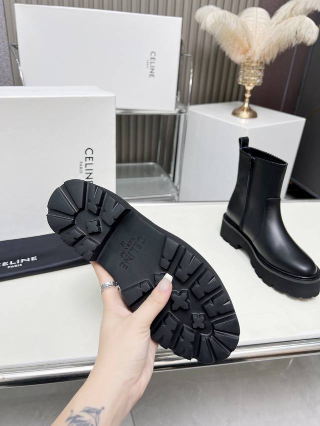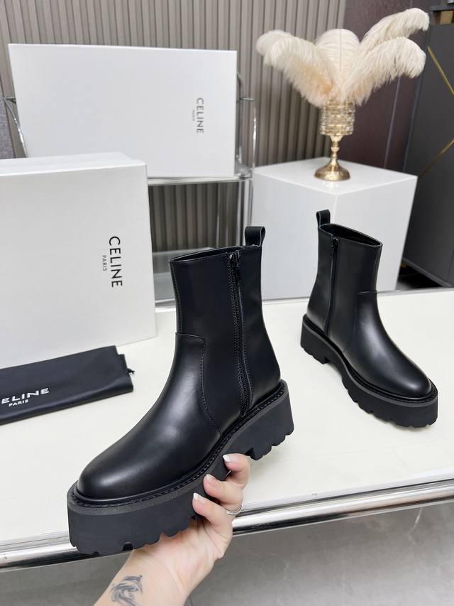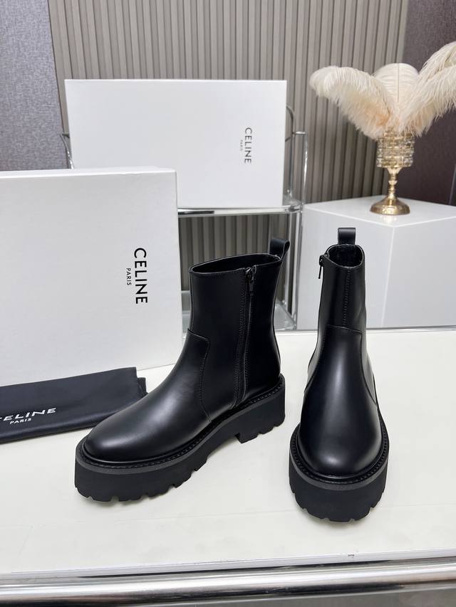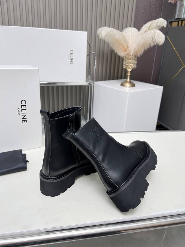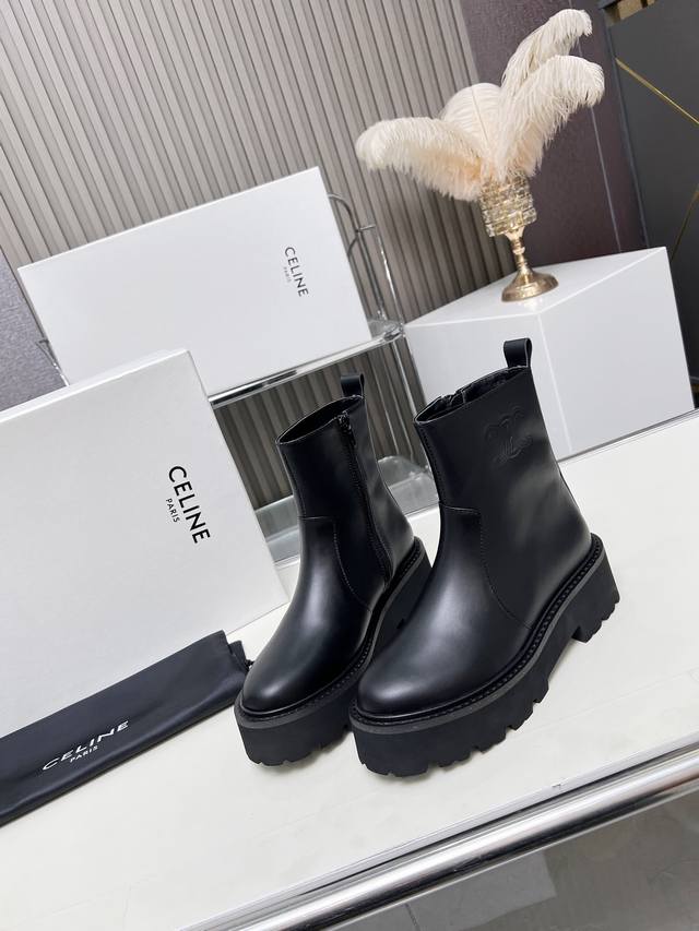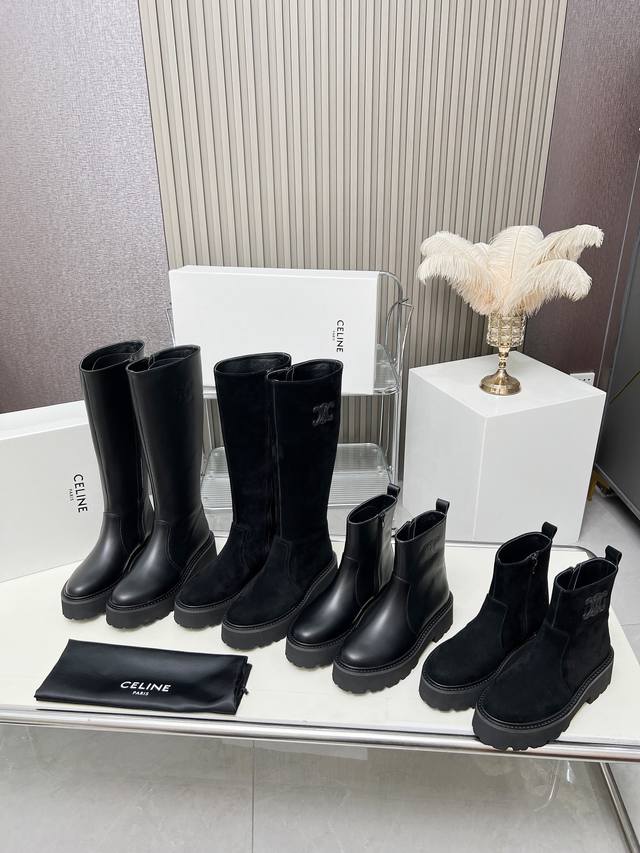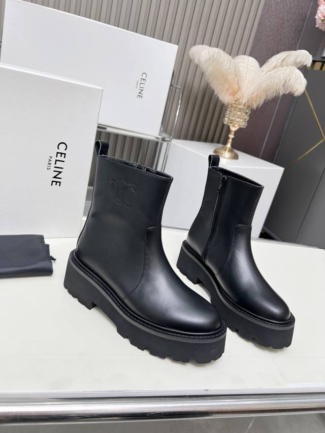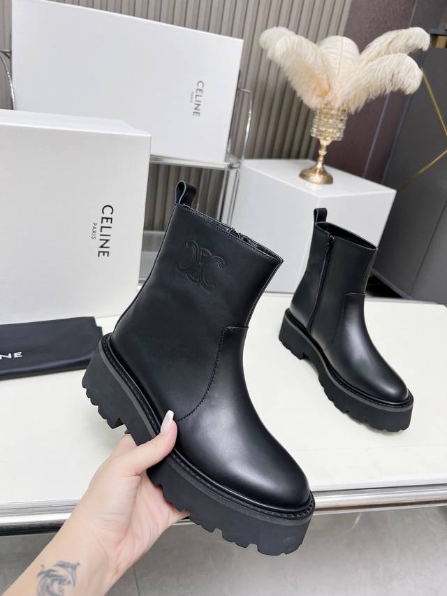 Factory-priced women's clothing and shoes, original Celine Arc de Triomphe, stylish, versatile, and comfortable thick-soled boots! Made of top-grain cowhide, high-mercerized lambskin, with a sheepskin lining and a flared outsole. Standard sizes 35, 40, 41, and 42. Made to order, no returns!