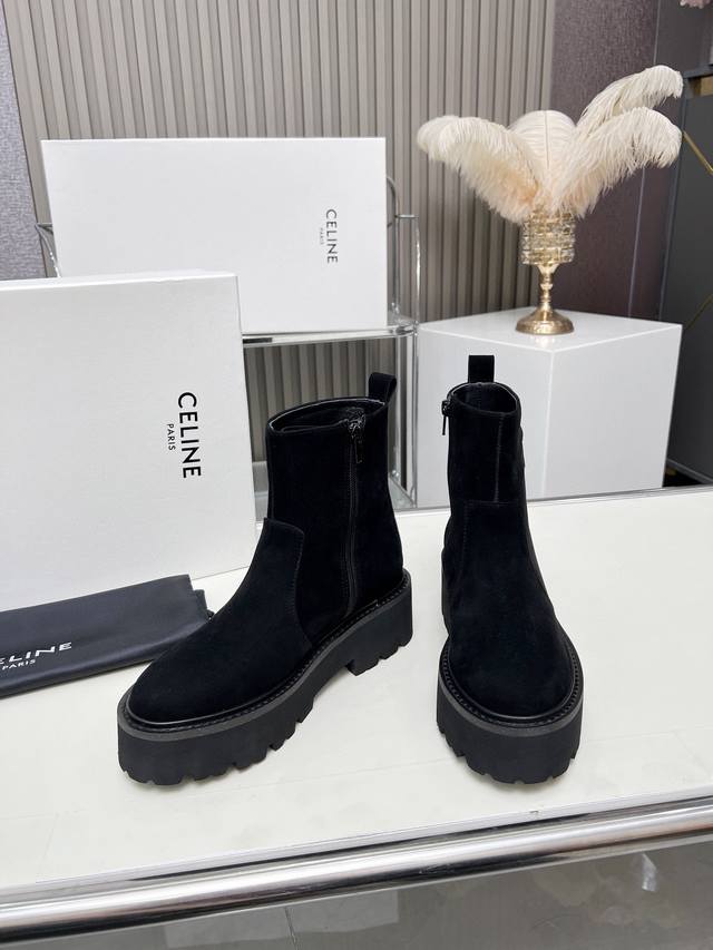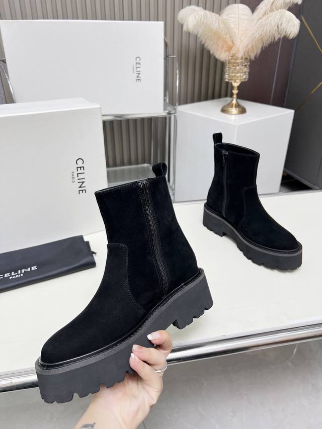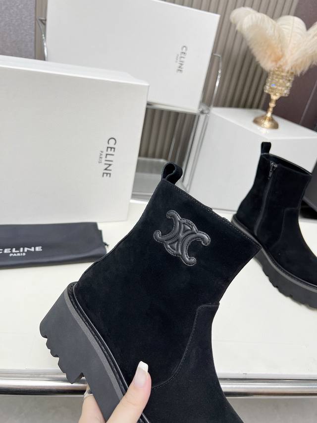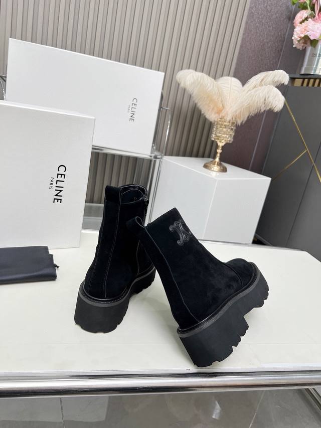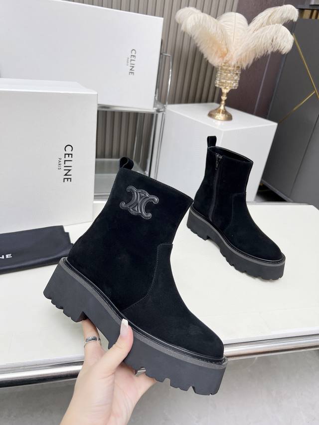 Factory-priced women's clothing and shoes, original Celine Arc de Triomphe, stylish, versatile, and comfortable thick-soled boots! Made of top-grain cowhide, high-mercerized lambskin, with a sheepskin lining and a flared outsole. Standard sizes 35, 40, 41, and 42. Made to order, no returns!