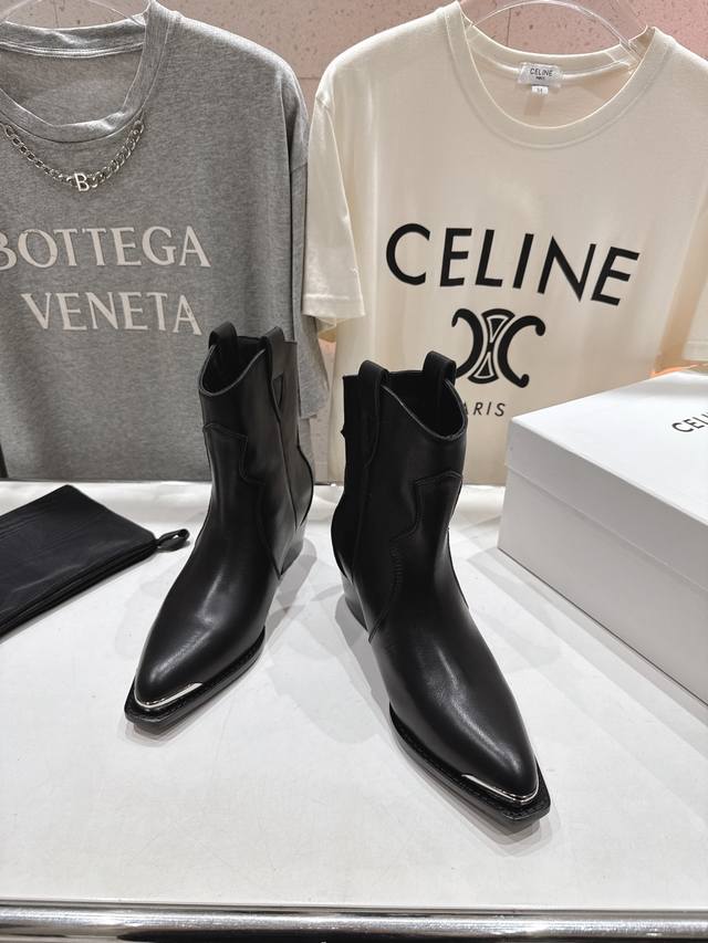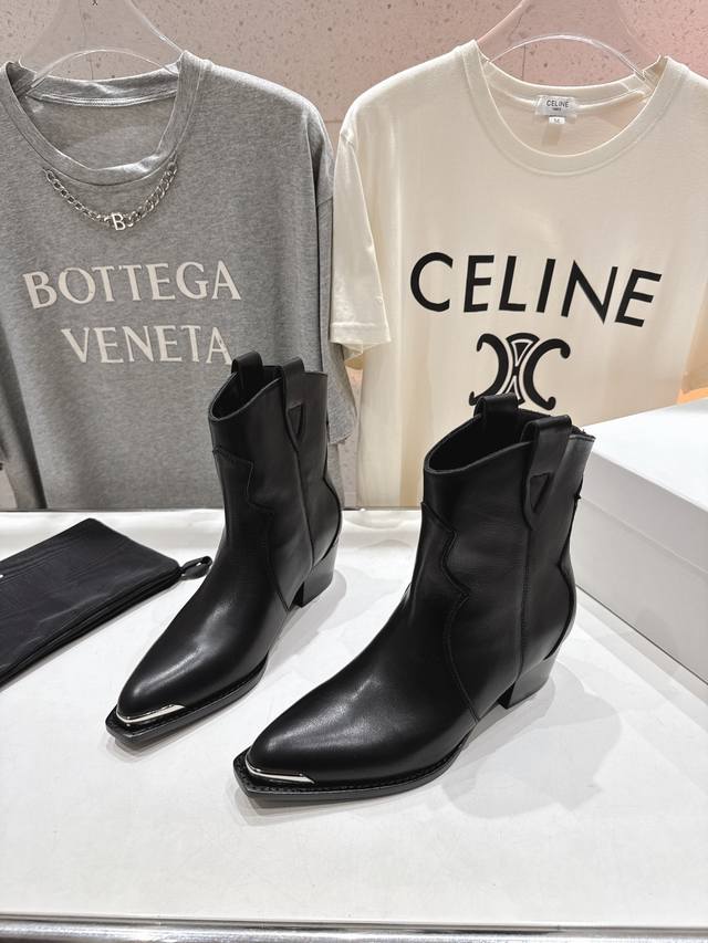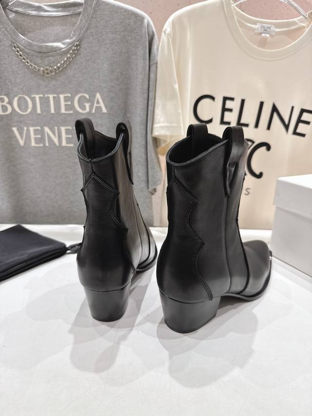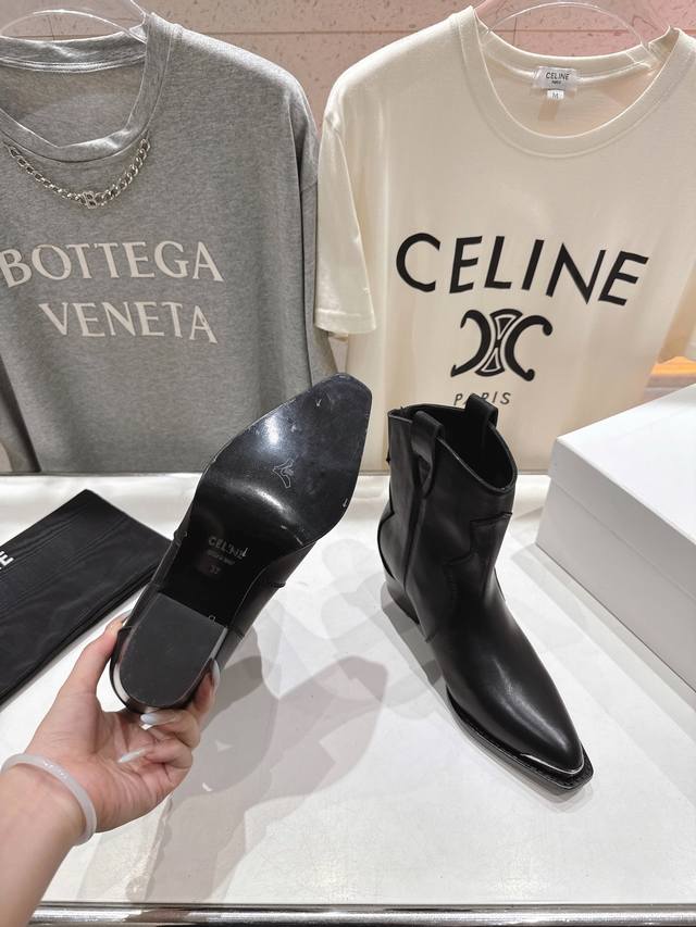 High-quality factory-made Celine F032 2025 Autumn/Winter New British Style Retro High-Heeled Ankle Boots/Knight Boots. Combining modern, traditional, and cool styles, these iconic designs utilize superior materials and feature keen and unique details. The finished product is highly fashionable and can withstand the test of time. A must-have for early autumn, pairing well with dresses and skinny jeans. Made with imported high-gloss calfskin suede, featuring an ultra-fine cowhide lining, original leather upholstery, and Italian luxury genuine leather sole. Full leather construction for high-end customization. Heel height approximately 6.5cm. Sizes: 35-39, 40-41. Custom orders are non-refundable.