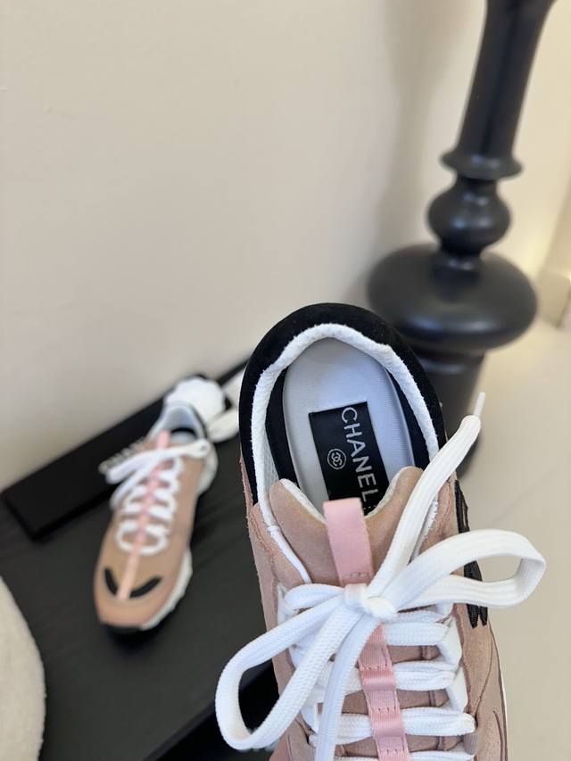 Chanel 2025 New Style Suede Round Toe Panda Diamond Pattern Thick Sole Sneakers Fashion Height Increasing Shoes Casual Shoes Material: Imported Suede Cowhide Lining: Original Lining Sole: Original Mold Outsole Full Packaging: Sizes 35-40, Sizes 40-41 are custom-made and non-refundable