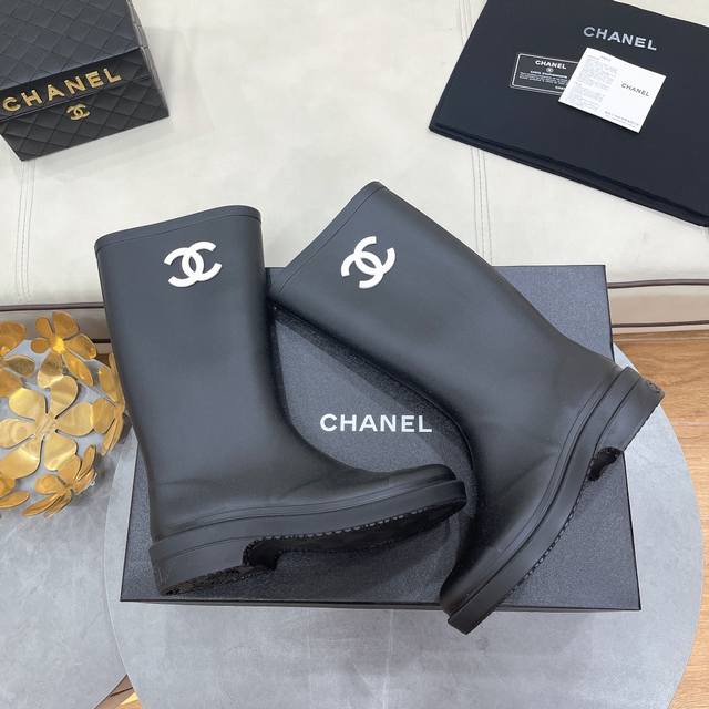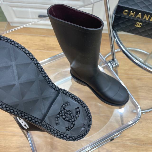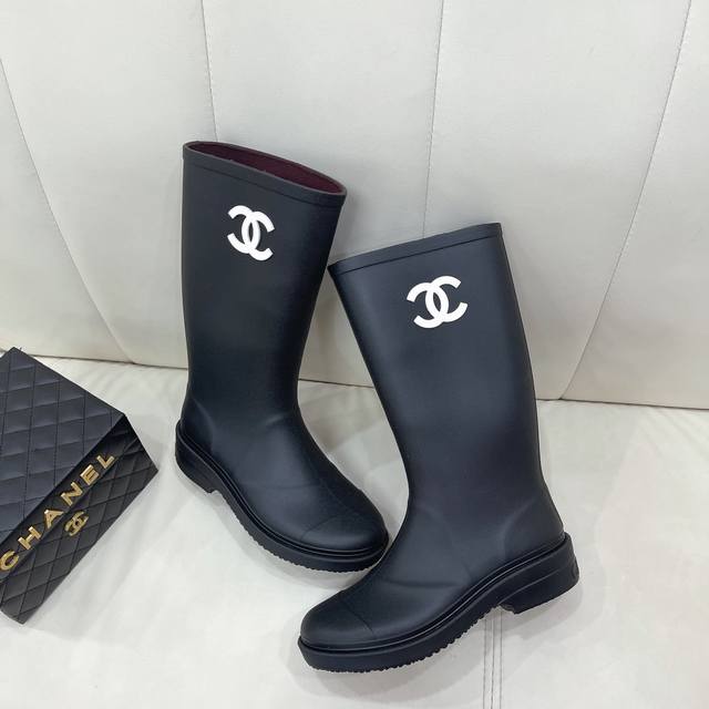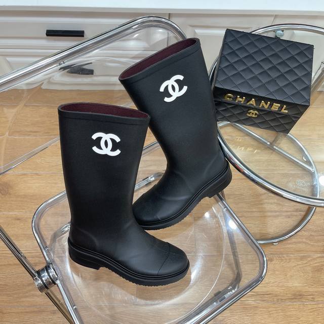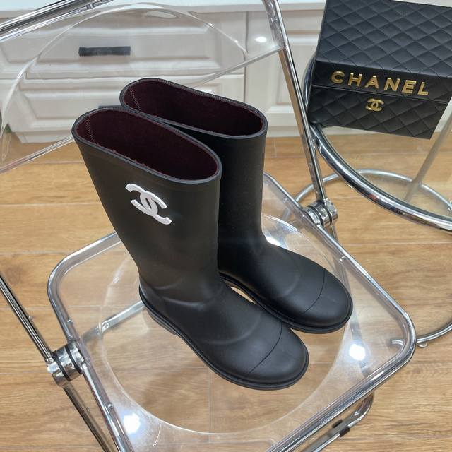 Chanel 25 Vantage Vintage Rain Boots - A must-have for vintage enthusiasts! These are truly antique-level vintage boots! The hottest rain boots of the year, everyone should own a pair. Incredibly breathable, incredibly versatile, and incredibly slimming. Comes with a high-end cloth bag packaging. A must-have! The complete packaging features the double C and letter logo design, plus a luxurious yet understated metal embellishment on the heel. The insole is made of comfortable and breathable lambskin. Sizes: 35-41.