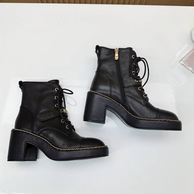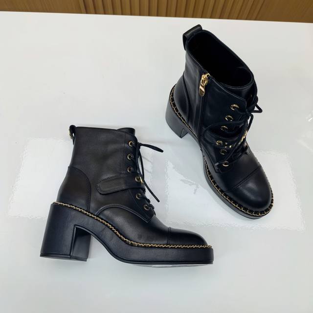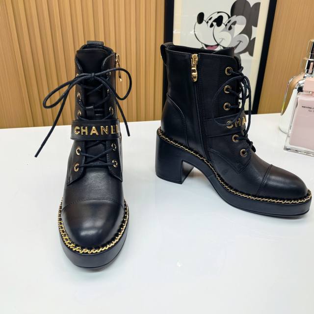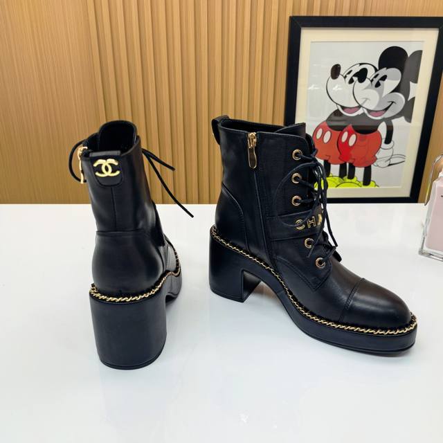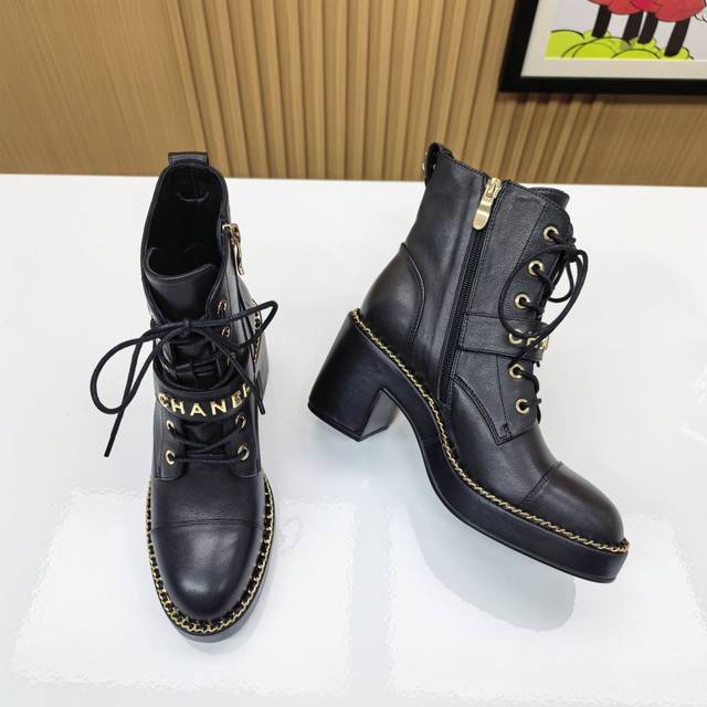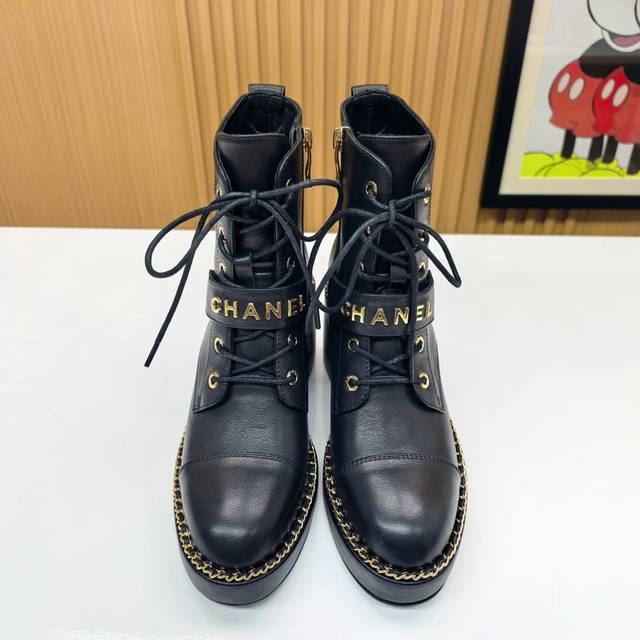 2025 Latest Chanel Heavy-Duty Lace-Up High-Heeled Ankle Boots