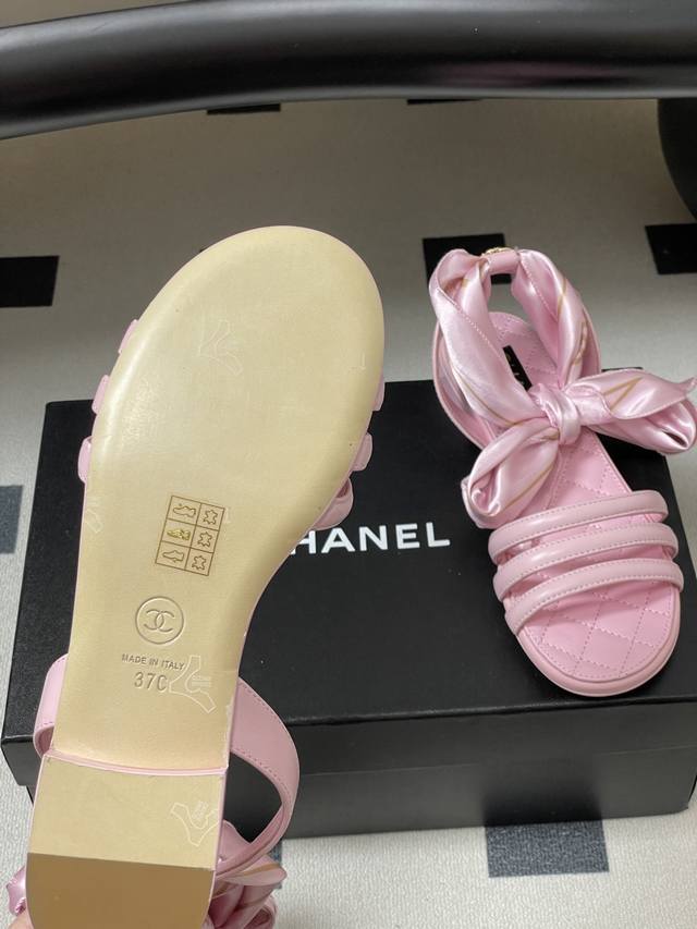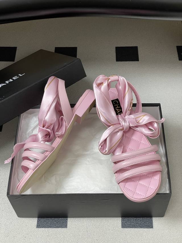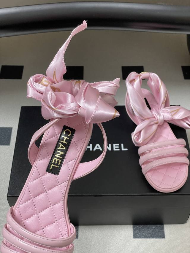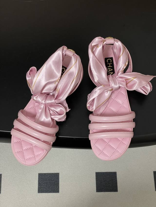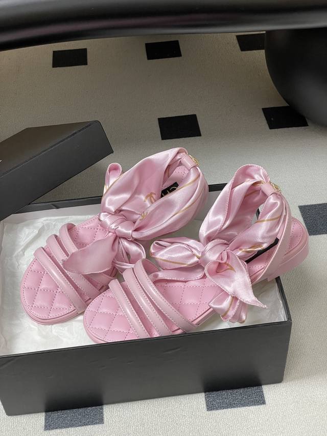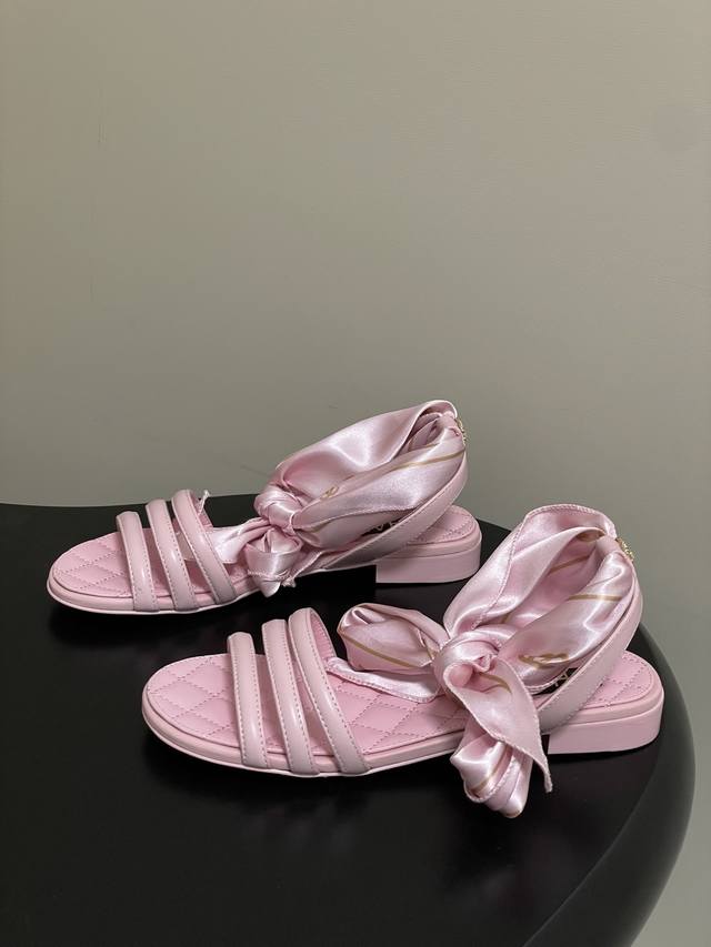 2026 Spring/Summer New Chanel 26C Classic Double C Buckle Diamond Pattern Flat Sandals with Scarf Ankle Strap Thin Strap High Heel Chunky Heel DDD These sandals possess a stunning blend of girlish charm and elegance. The ribbon design breaks classic boundaries, while the double C element adds a touch of understated luxury. The silky satin ribbon is smooth and comfortable against the skin, and the strap design continues the retro aesthetic. The interplay of light and shadow imprints the brand's identity, subtly releasing a luxurious feel. The flat version emphasizes a relaxed and casual style, the mid-heel version balances elegance and comfort, and the high-heel version elevates the overall look! Sweet, cool, and elegant