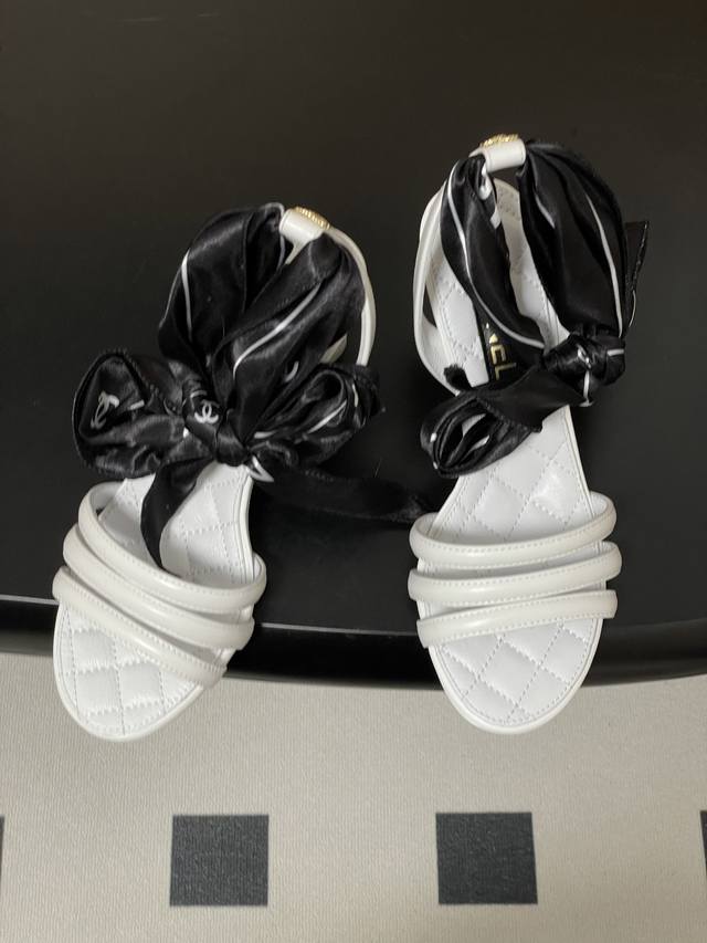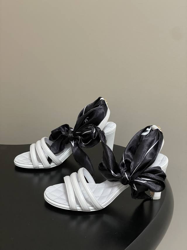 2026 Spring/Summer New Chanel 26C Classic Double C Buckle Diamond Pattern Flat Sandals with Scarf Ankle Strap Thin Strap High Heel Chunky Heel DDD These sandals possess a stunning blend of girlish charm and elegance. The ribbon design breaks classic boundaries, while the double C element adds a touch of understated luxury. The silky satin ribbon is smooth and comfortable against the skin, and the strap design continues the retro aesthetic. The interplay of light and shadow imprints the brand's identity, subtly releasing a luxurious feel. The flat version emphasizes a relaxed and casual style, the mid-heel version balances elegance and comfort, and the high-heel version elevates the overall look! Sweet, cool, and elegant