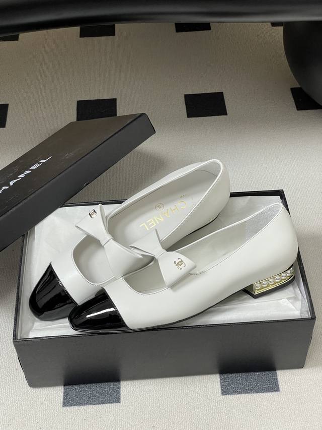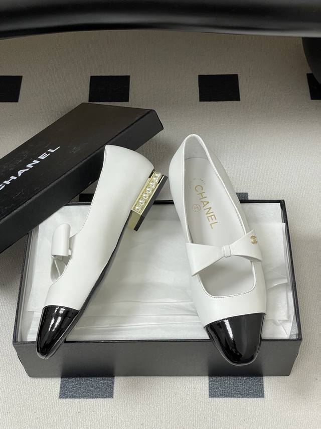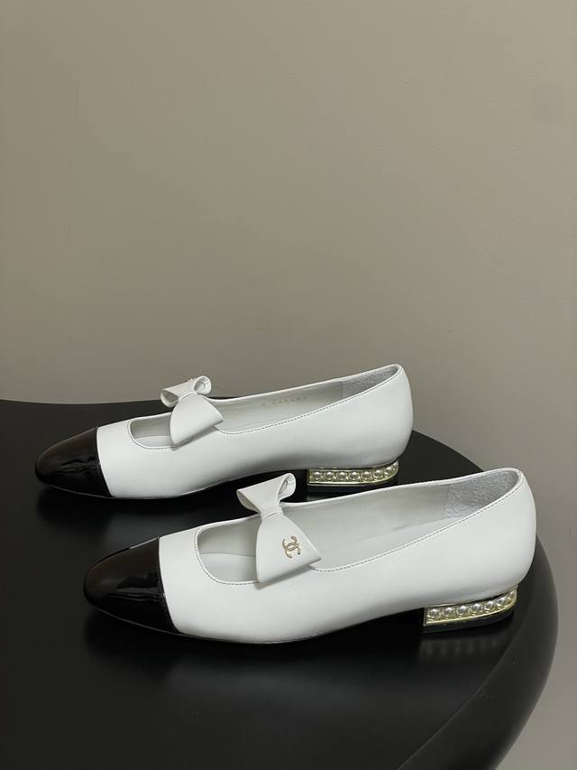 25A Early Autumn New Chanel Pearl Double C Buckle Bow Mary Jane Shoes Pearl Heel Ballet Flats DDD These doll-like shoes are incredibly cute, giving off a rich heiress vibe. Retro, sweet, and youthful