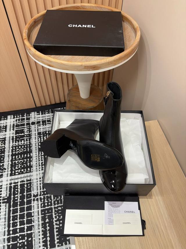 25Fw Autumn/Winter New Chanel Patent Leather Chunky Heel Elastic Ankle Boots. Continuing the high-end Chanel style. Wearing these will make you look like an elegant heiress! The elastic leather is very soft, provides excellent support, and is comfortable and stylish! Upper: Custom elastic sheepskin; Lining: Imported elastic Lycra; Insole: Goatskin; Outsole: Italian Grade A genuine leather! Heel Height: 5cm; Sizes: 35-39; Sizes 34, 40, 41 are custom-made and non-refundable.