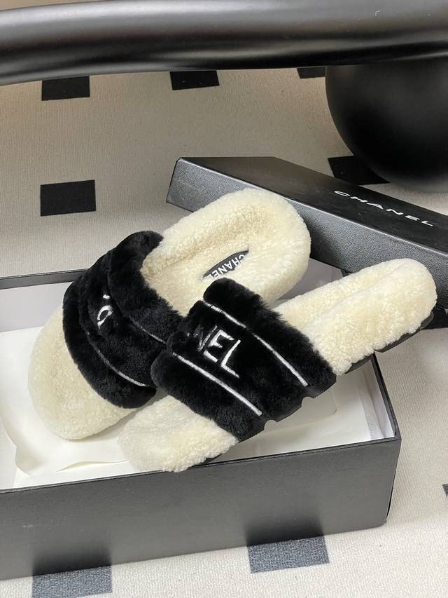 25Ss Autumn/Winter New Style Double C Wool Slippers, Thick-Soled Furry Shoes, Mule Furry Slippers DDD The upper features the classic double C logo paired with Chanel lettering. The entire shoe is fluffy and very comfortable, and the feel on your feet is absolutely irresistible! A must-have for winter. DDD Upper: Wool DDD Insole: Wool DDD Sole: Rubber Outsole DDD Sizes: 35-39 40.41 Made to order, no returns or exchanges DDD