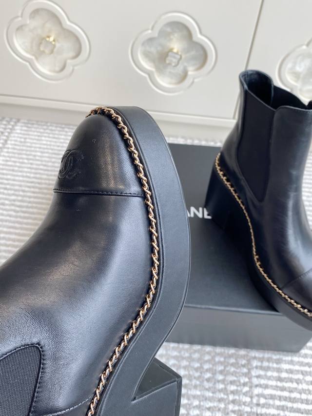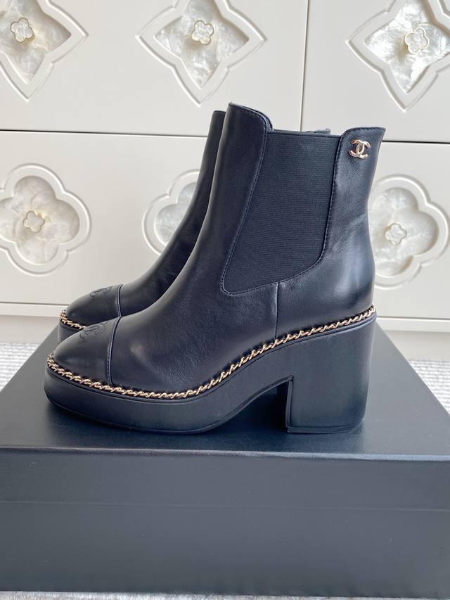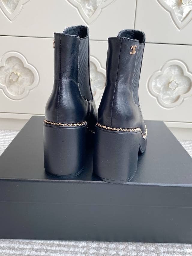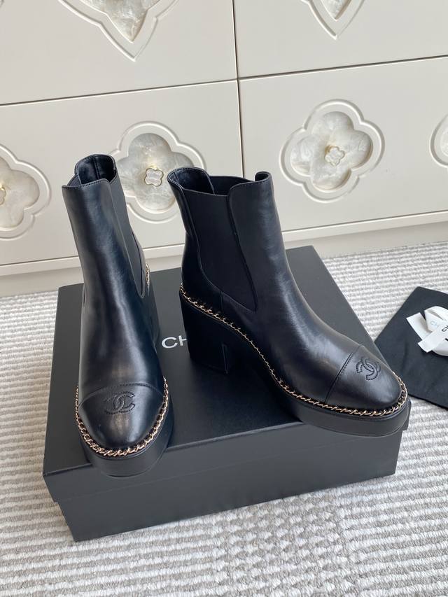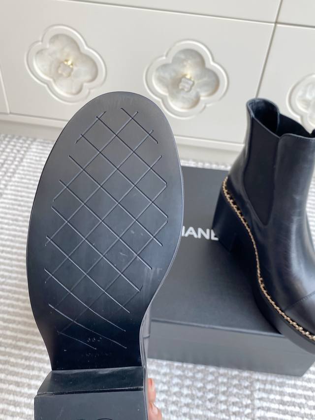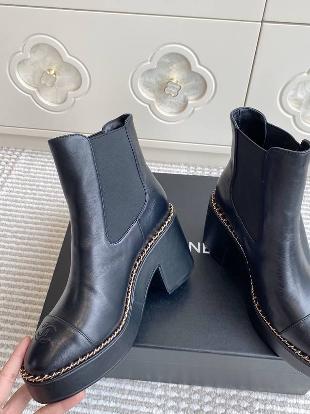 25Ss Early Fall Chane*L Counter New Chain-Linked Chunky Heel Ankle Boots. This thick-soled boot has been a frequent sight in European and American street style and has also become a viral sensation on Instagram. The overall sleek lines remain true to the original, making it truly captivating. I believe discerning women will appreciate it. A goddess's weapon, it truly hits my sweet spot! Made of premium genuine leather, it's incredibly textured and comfortable. The thick sole not only adds height and a slimming effect, but also provides stability while walking. The simple Chelsea boot design is versatile and stylish, easily creating a variety of looks with jeans or a mini skirt. Perfect for spring and autumn, it's both warm and stylish, a true fusion of fashion and practicality. Upper: Cowhide Lining: Sheepskin Outsole: Italian leather Sizes: 35-39, 40, 41 Customizable, no returns or exchanges.
