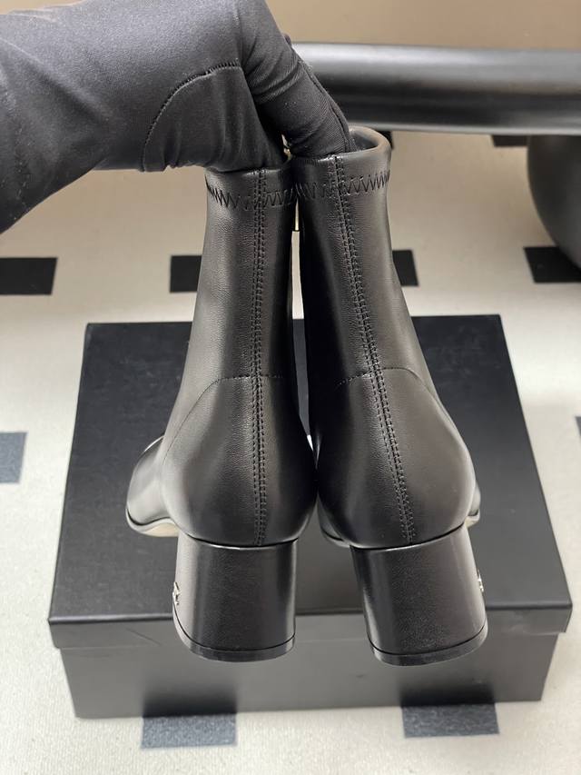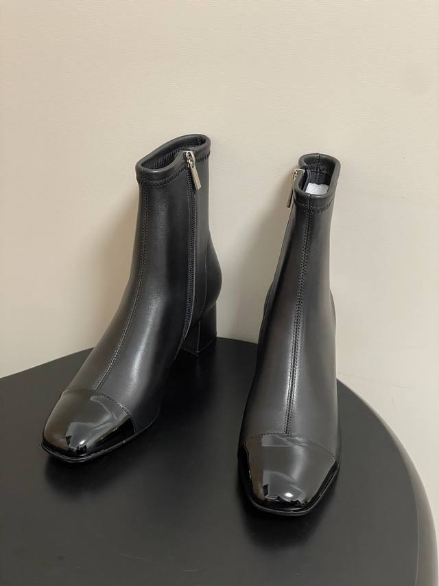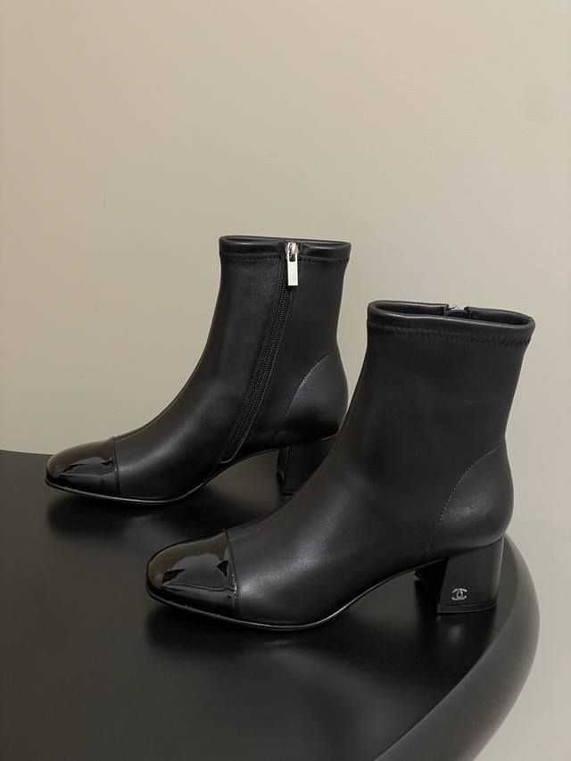 A timeless classic Chanel style. These square-toed, side-zippered stretch ankle boots with block heels and a chunky heel are a runway style statement from the iconic Chanel collection. The side zipper allows for easy on and off! The stretch leather fabric is incredibly soft and provides a snug fit, creating a comfortable and elegant look. They'll elongate your legs! Upper: Custom stretch sheepskin Lining: Imported stretch Lycra Footbed: Goatskin Sole: Italian Grade A leather outsole Heel Height: 5cm Sizes: 35-39 34, 40, 41, 42 Made to order, no returns or exchanges