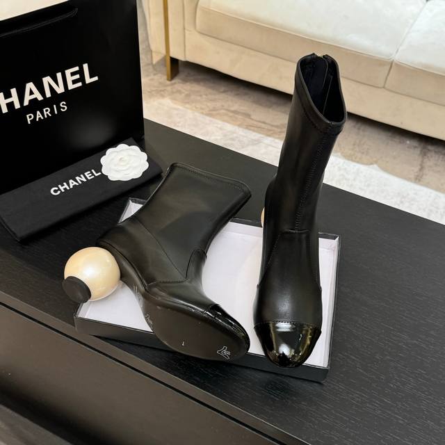 Chanel Xiaoxiang 25Ss new autumn and winter round-toed zippered ball-heeled short boots