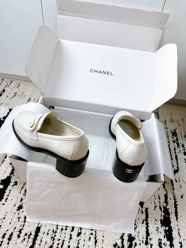 Airplane box + 10 Chanel 25 A mid-heel loafers