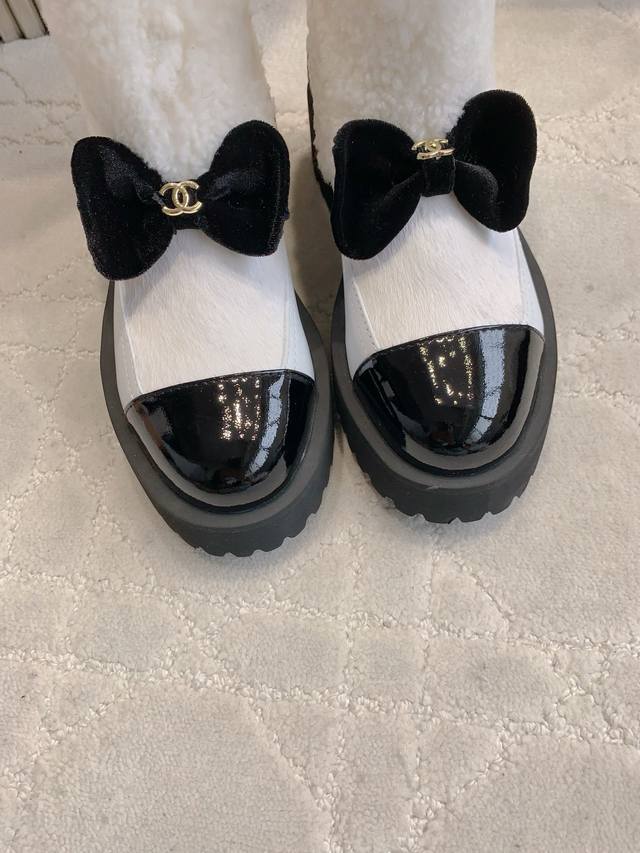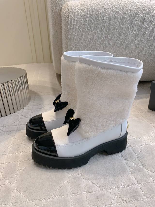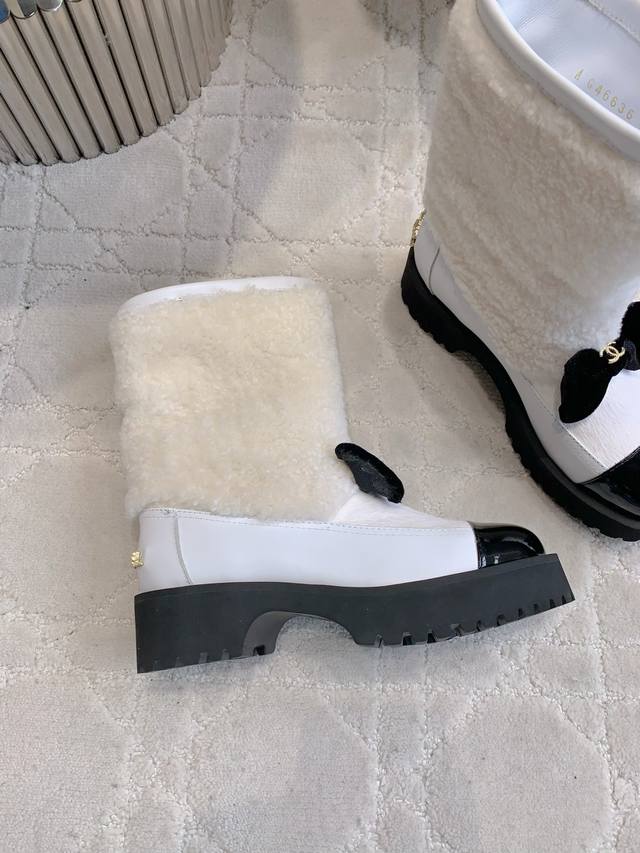 Ankle Boots & Long Boots DDD Chane* New Wool Boots Warm and Comfortable, Cute Bow Decoration, Thick Sole Design to Lengthen Leg Lines DDD Upper: Calfskin, Wool Lining, Sheepskin Insole, Original Mold, Outsole Sizes: 35-39, 40, 41, 42 Custom Made DDD